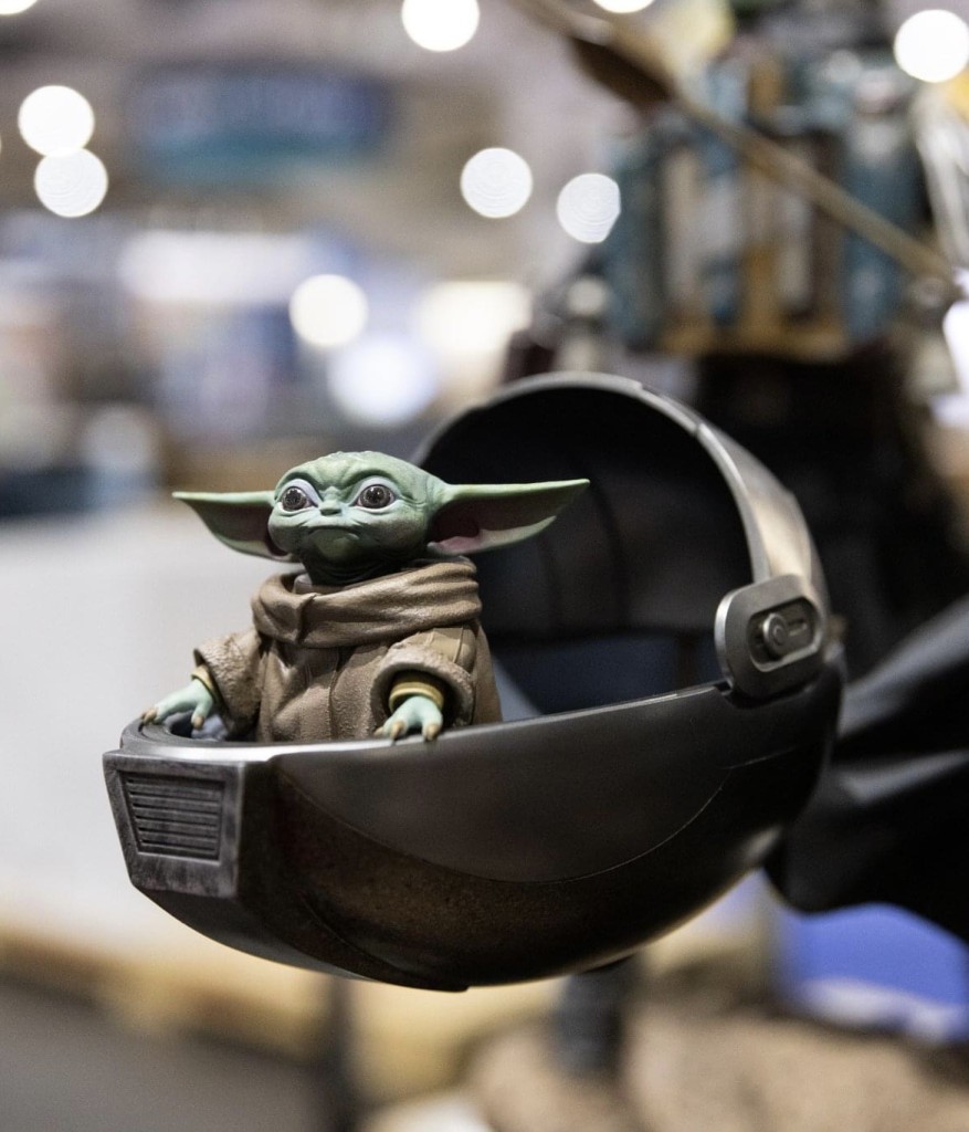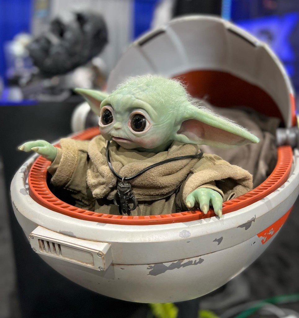 This is the lifesize animatronic puppet from EFX Collectibles. Grogu was designed, developed and engineered with Garner Holt Productions. Most of the parts came from supplier Legacy Effects, the creator of Grogu, seen on screen in The Mandalorian. Custom built and hand made with the highest quality, state-of-the-art components and with 15 unique movements for the base model, servo motors can be added up additional to 16.