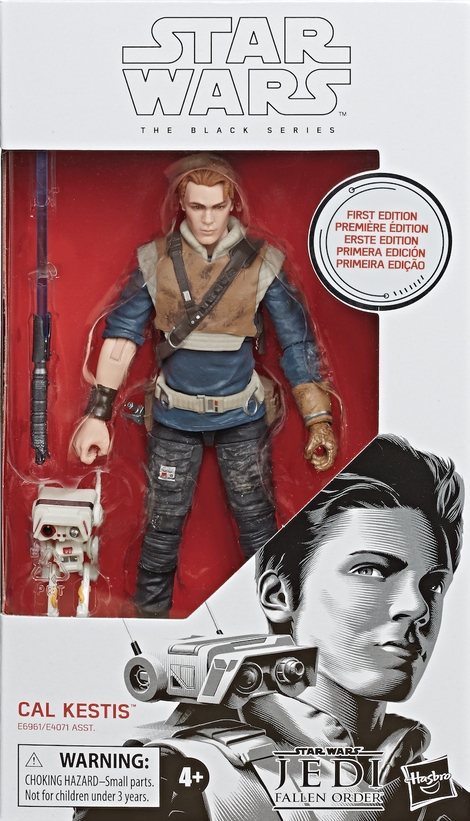 A Jedi Padawan during the Clone Wars, Cal Kestis narrowly escaped the horrors of Order 66 and was forced into hiding. Together with explorer droid BD-1, he embarks on a journey to rebuild the Jedi Order while evading the terrifying Imperial Inquisitorius. This is Cal in First Edition white packaging.