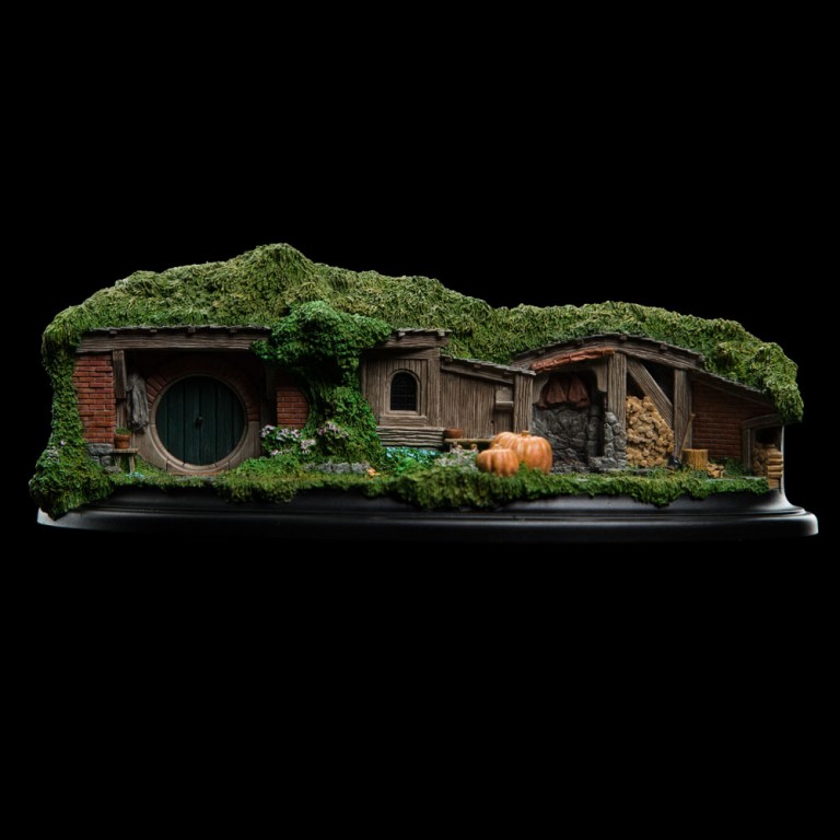 Neighbouring Bilbo Baggins on the left is the warm red door of number 40 Bagshot Row, a humble Hobbit-hole when compared to Bag End, modestly dressed with small white flowers and a stone slab porch. Well kept in true Hobbit fashion, it overlooks the Party Field and the Party Tree and is the second home in a series of collectible Hobbit Hole environments from the artists at Weta Workshop. Because of the relationship we have with all the production parts of the process, we have access to everything from concept drawings to set plans, which is really handy when making things like the Hobbit Holes.