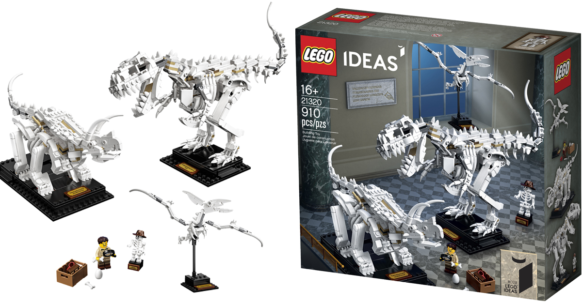 - A wonderfully detailed dinosaur fossils set featuring buildable, posable, 1:32 scale toy models of Tyrannosaurus rex, Triceratops and Pteranodon skeletons, each with display stands to create LEGO® style natural history museum exhibits.