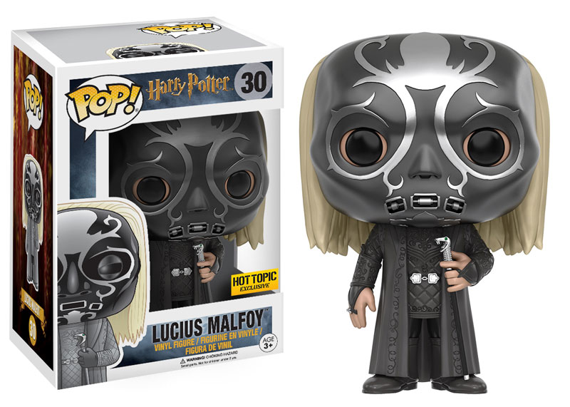 Lucius Malfoy is given a fun, and funky, stylized look as an adorable collectible vinyl figure – wearing his Death Eater mask!
