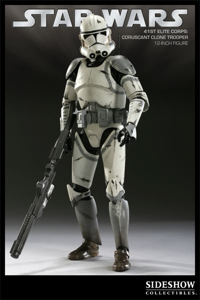 Fully articulated male body (armored body) with 30+ points of articulation, Bodysuit, Fully detailed armor set with helmet, Clone Trooper Carbine Blaster, Clone Trooper Long Rifle, 12-inch Figure Display Base
