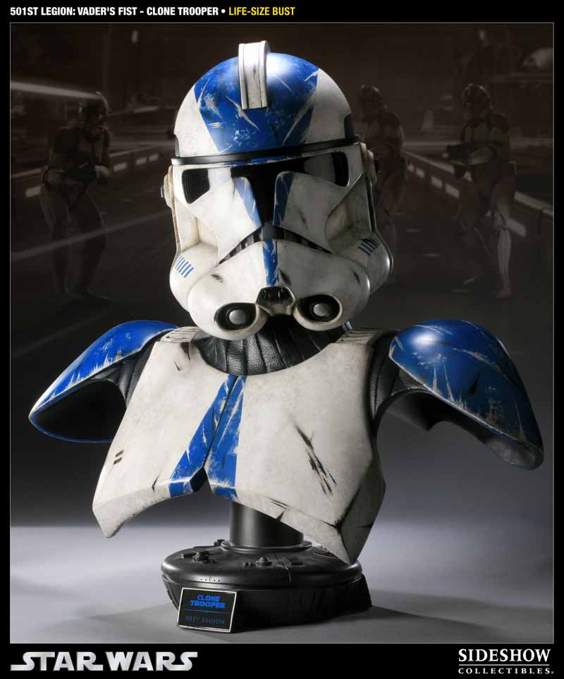 The 501st Legion: Vader’s Fist – Clone Trooper Life-Size Bust captures every detail of the Dark Side’s military in stunning detail. The bust is crafted in fiberglass, polystone, fabric and metal for the most authentic and realistic representation. Each piece is individually painted and finished, each with its own unique quality and detail that is the trademark of a handcrafted Sideshow Collectibles product. Standing over two feet high, the 501st Legion: Vader’s Fist – Clone Trooper Life-Size Bust is a must-have for any STAR WARS collection.