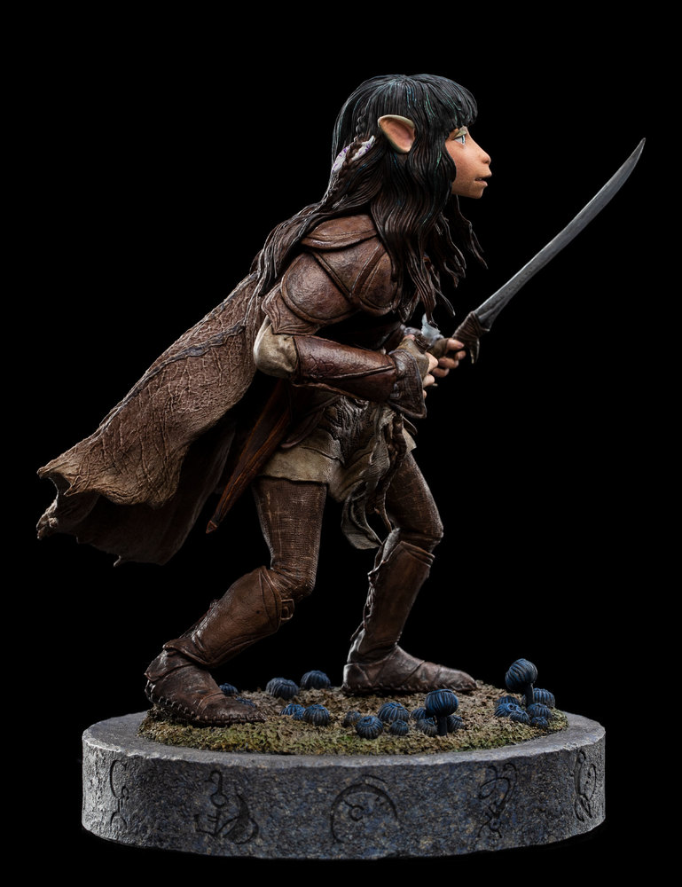 Rian the Gelfling joins Wētā Workshop’s exquisitely detailed line of Dark Crystal collectibles, a line that pays homage to the richly layered, fantastical world of Thra. Faux-stone base with terrain designs inspired by The Swallow Bog
