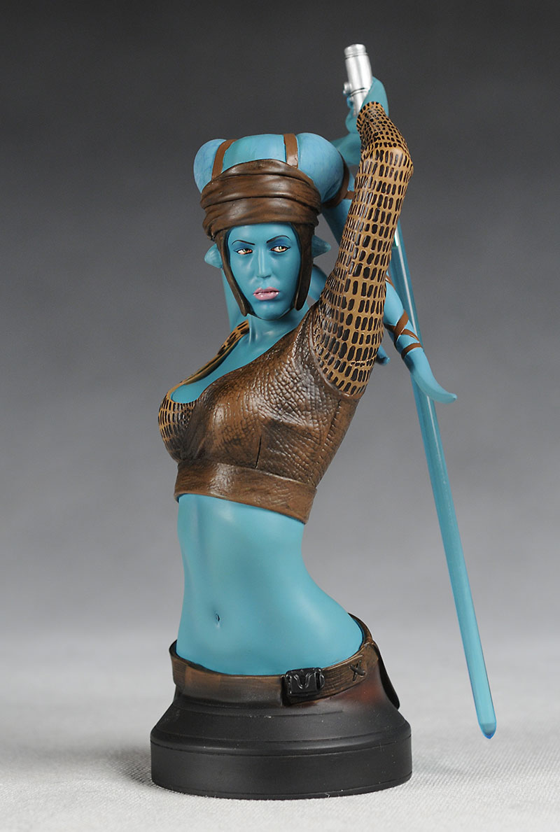 Like her fellow Jedi, Aayla Secura became a general during the Clone Wars. During the Outer Rim Sieges, she was stationed on the colorful world of Felucia. As General Secura approached the opposing Separatist forces, Chancellor Palpatine activated Order 66, and contacted Aayla’s clone officer, Commander Bly, via hologram. The executive command identified the Jedi as traitors to the Republic. Bly loyally carried out the order, raising his blaster rifle against his Jedi general.