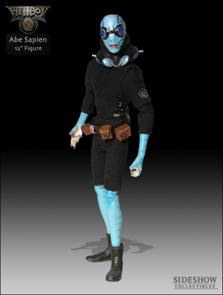 The 12 inch Abe Sapien figure is fully outfitted in Abe’s trademark wet suit, complete with his utility belt including the BPRD logo buckle, multiple pouches and a map case. The figure also includes two interchangeable heads, finned calves, webbed hands, and a display stand.