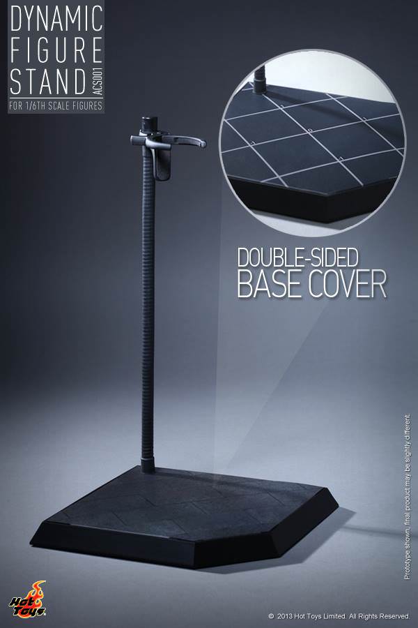 The Hot Toys Dynamic Figure Stand is specially designed for 1/6th scale collectible figures. It features a velvet covered base and includes a double sided patterned paper cover for your choice of scenario. The flexible pillar is especially ideal for showcasing figures in mid-air/flying poses.