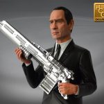 Featuring an authentic likeness of Tommy Lee Jones in character as Agent K, the statue can be displayed either with or without the classic MIB sunglasses – essential if you are going to use the neuralyzer! Agent K is portrayed standing ready to guard the Earth from Alien invaders with his trusty Pulsar Blaster! Standing 20″ tall, the statue comes complete with an MIB themed base.
