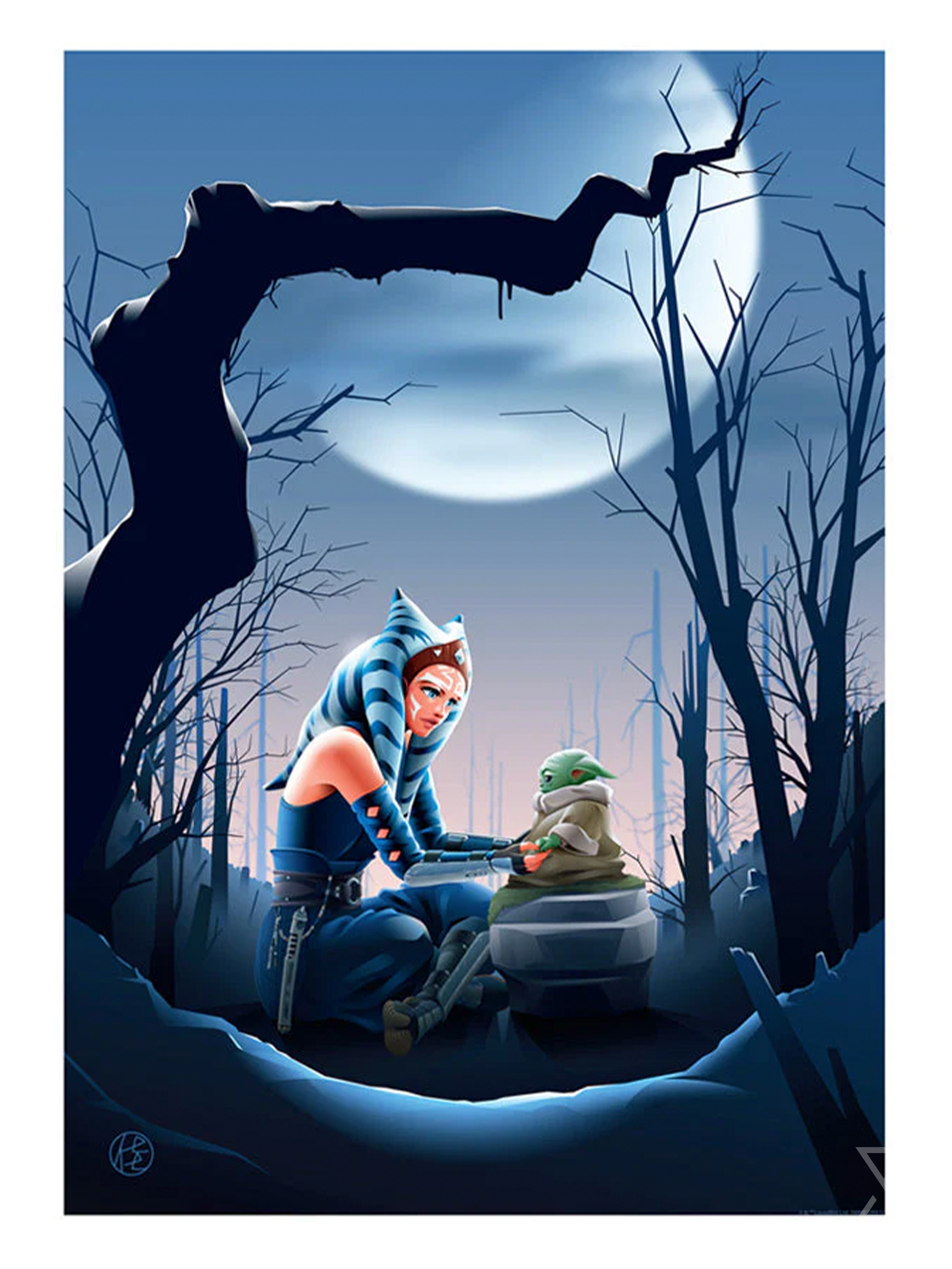 Choose your path, and bring home the Ahsoka and Grogu Art Print by Kayo Takahata today!