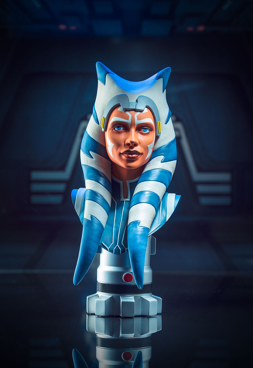 She’s one of the most popular characters in Star Wars fandom, and now Ahsoka Tano is a Legend in 3D! This approximately 10-inch bust captures the Jedi Knight in ½ scale, atop a sculpted, lightsaber-inspired pedestal. Limited to only 1,000 pieces, she features detailed sculpting and paint applications, and comes packaged in a numbered, full-color box with a certificate of authenticity.