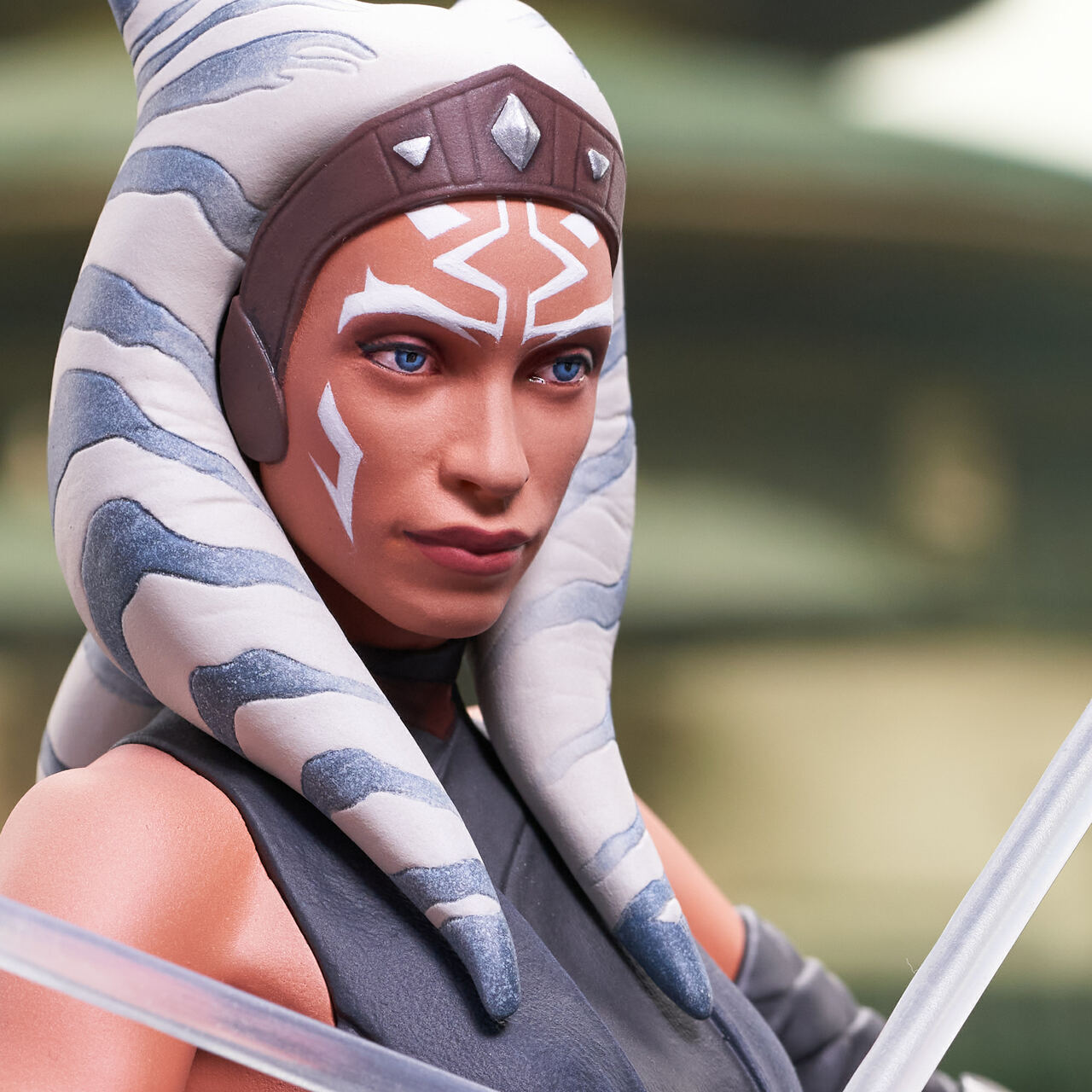 A Gentle Giant Ltd. release! The moment youve been waiting for has arrived! Gentle Giant Ltd. is ready to offer their mini-bust of Ahsoka Tano, as seen in the second season of The Mandalorian. Depicting her with her twin lightsabers crossed and at the ready, this approximately 7-inch mini-bust features detailed sculpting and paint applications, and comes packaged with a numbered certificate of authenticity in a full-color box. Limited to only 3,000 pieces. Designed by the Silva Bros., sculpted by the artisans at Gentle Giant Ltd.!