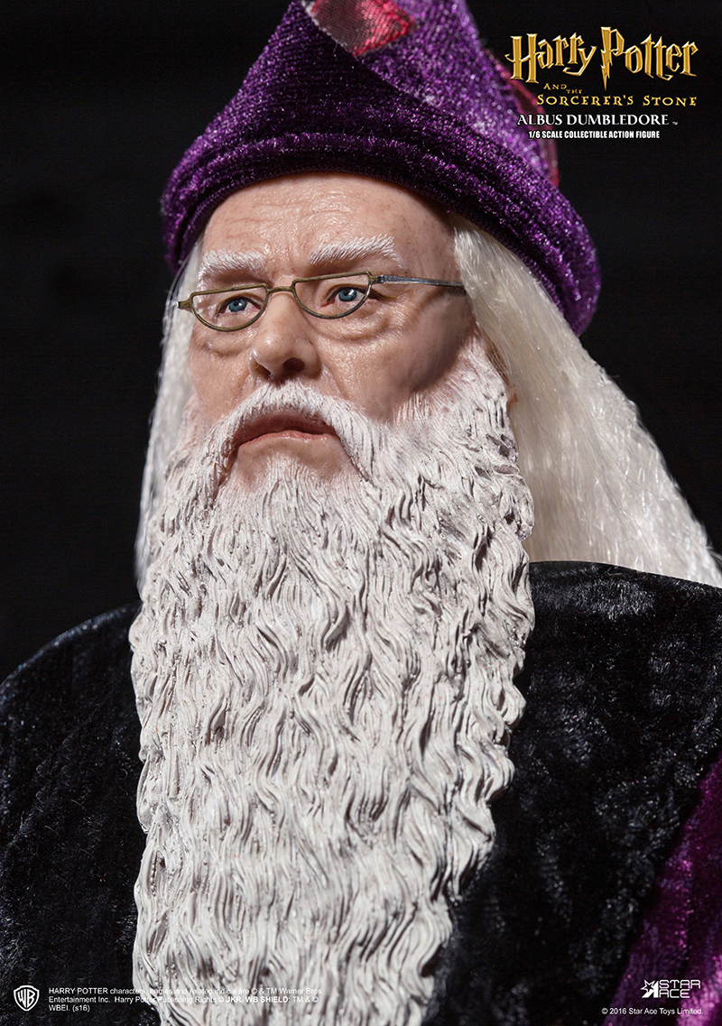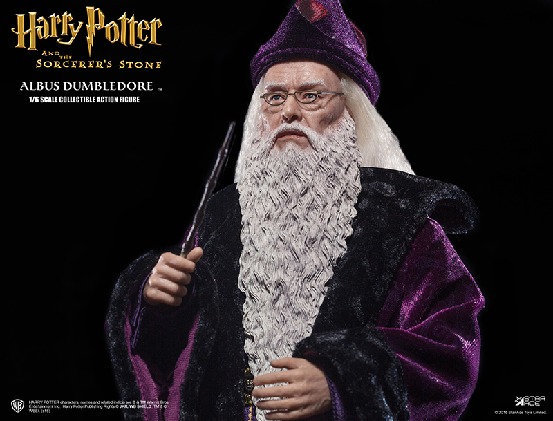 - Professor Albus Dumbledore was Harry Potter’s most beloved and respected mentor. This deluxe 1:6 scale collectible figure represents the brilliant wizard as portrayed by Richard Harris in Harry Potter and the Sorcerer’s Stone. This highly detailed figure features a hand painted authentic head sculpt of Harris with rooted hair and beard. The Hogwarts Headmaster comes with his wizard robes and hat, and includes his wand, a crystal ball with light up base, a golden cup, two rings and the famed sword of Godric Gryffindor.