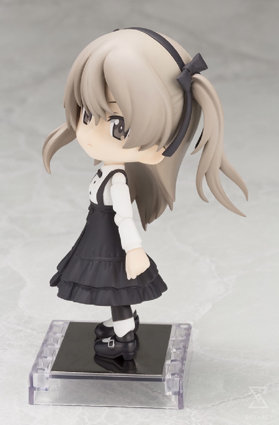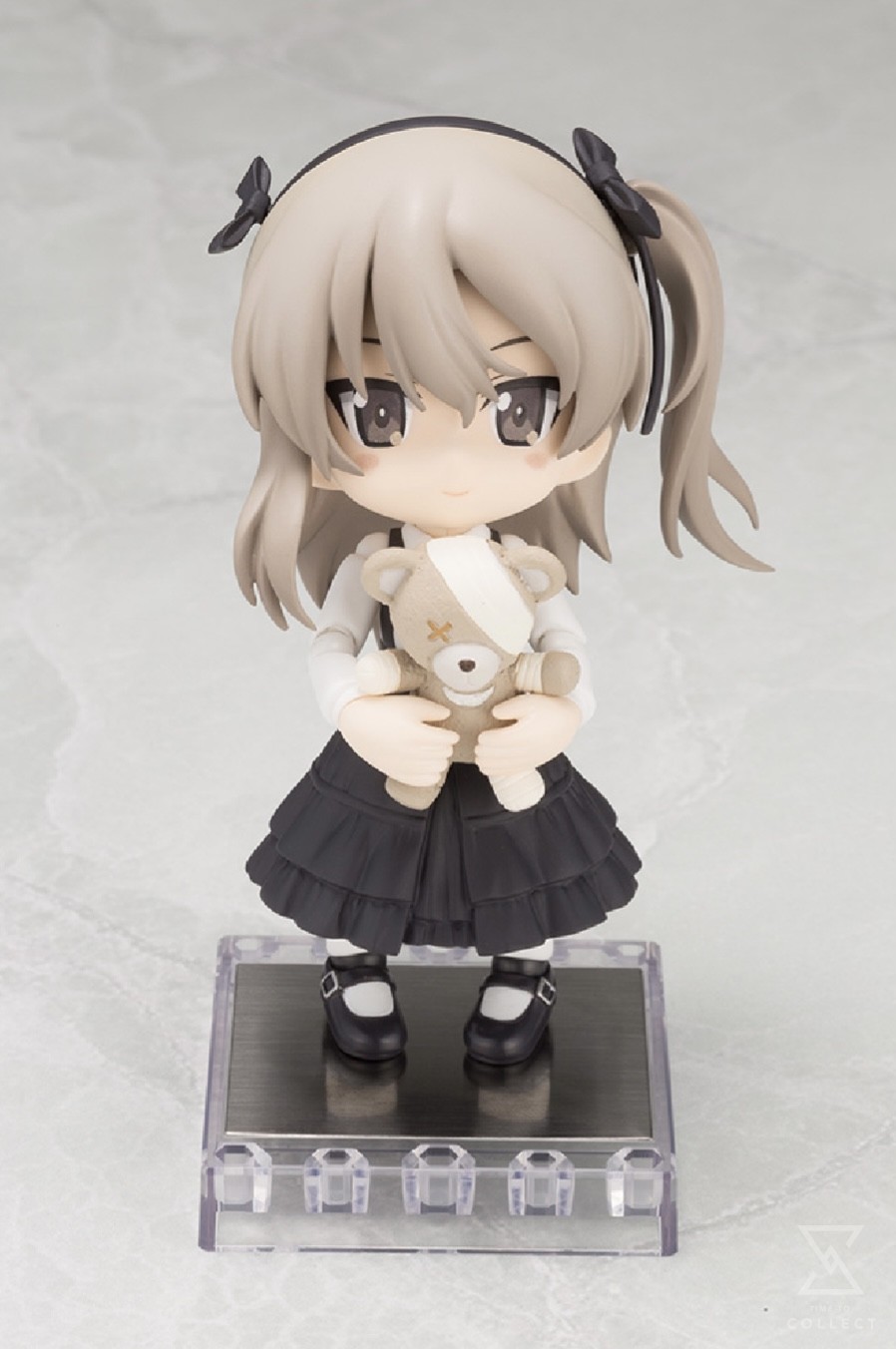 A Kotobukiya Japanese import!Kotobukiya’s next Cu-Poche figure returns to the world of high school girls and their tanks with Girls und Panzer. Up next is the commander of the University Selection Team, Alice Shimada! Poseable and fun, each Cu-Poche figure features multiple points of articulation and magnets in its feet for extra stability on the included base. From Girls und Panzer der Film, the child prodigy and heir to the Shimada household makes her Cu-Poche debut in her casual clothes, ready for a fun time outside of her favorite tank. Alice wears a super cute black dress over a white shirt with white stockings, black shoes, a black bowtie, and a black headband with bows on it. The commander also comes with a great collection of interchangeable parts and accessories including parts to replicate her usual “expressionless” face that shows her cool and collected side as well as her rarely seen smile, and special “hugging hand parts” let her hold her beloved stuffed bear Boko! Sculpted by Kei Tanaka, Alice Shimada stands just under 4 ½ inches tall and has multiple points of articulation for great posing and display options. Let this adorable and highly skilled senshado commander into your collection and your heart today!