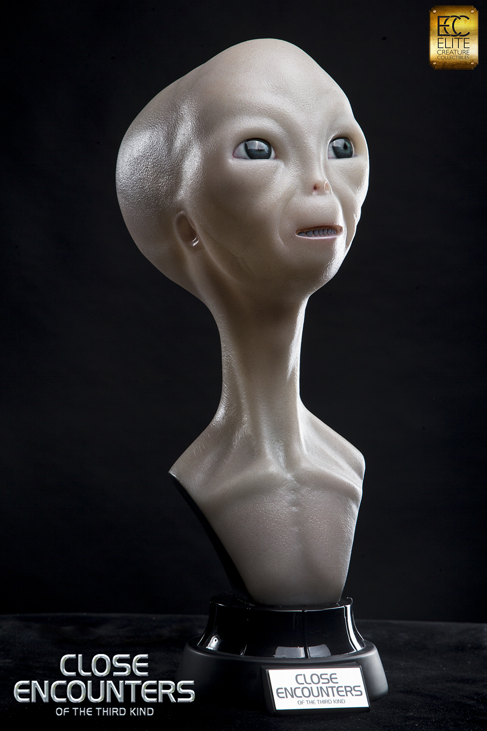 Now Elite Creature Collectibles brings the extraterrestrial beings to life for the first time in a high-end collectible. The alien life-size bust stands over 24” and is accurate in every detail, from the milky complexion to the glassy, ethereal gaze. The alien bust is set atop a themed base, and is sculpted by Special FX Master Steve Wang.