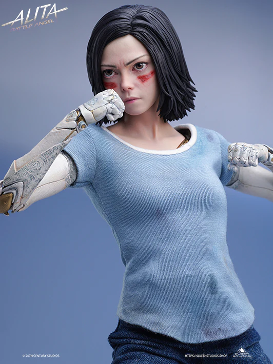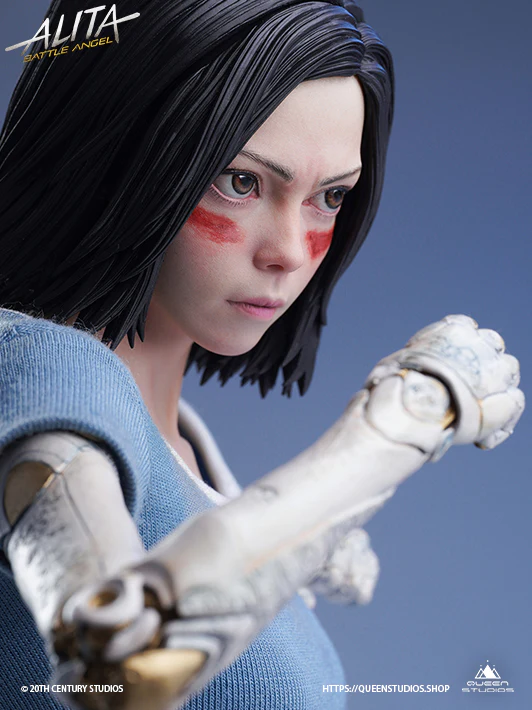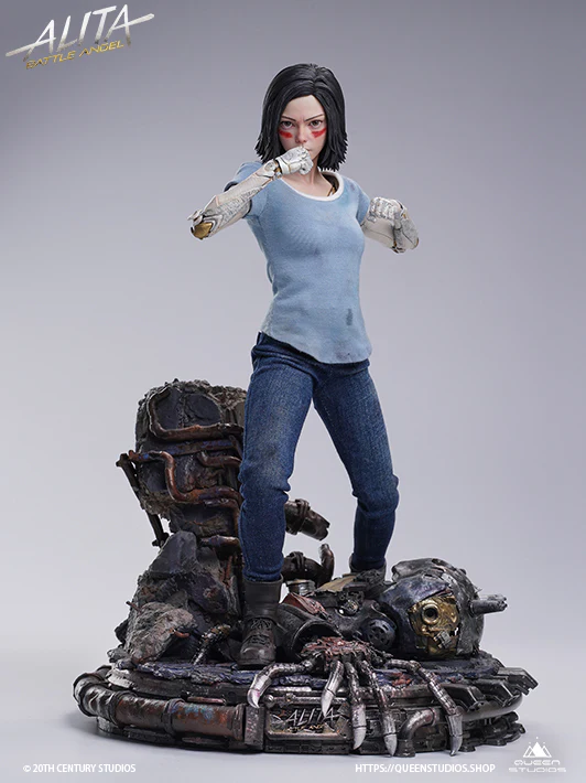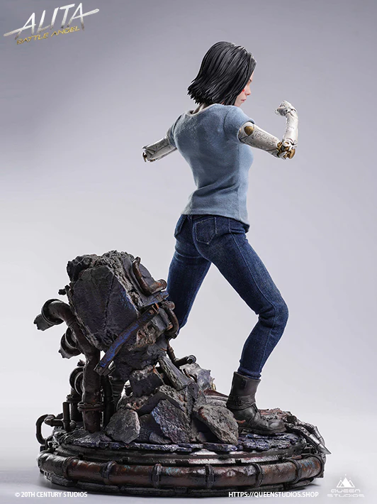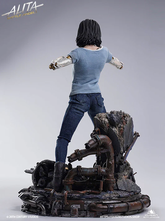 This Queen Studios’ 1/4 scale Alita statue: Battle Angel Stands at 47cm tall. A near perfect scaled down replica of the 1/1 Life-Size statue, this piece is perfect for those who don’t have the space for a 1/1. Like the life-size statue, her porcelain “doll” body is intricately designed, capturing the unique patterns and clockwork. Her likeness has been recreated with stunning accuracy, and the unique movie inspired base is packed full of detail making this the ultimate collector piece.