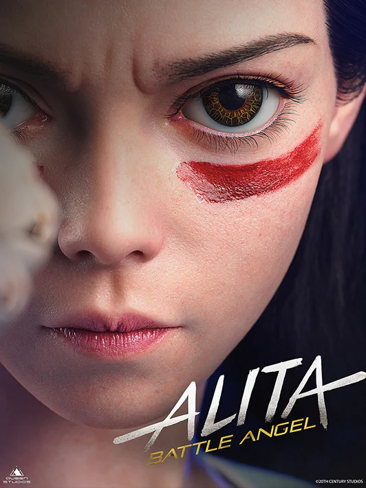Queen Studios is pleased to release the first Alita Battle Angel “Doll” Body statue from 20th Century Studios’ Alita: Battle Angel (2019). Inspired by the 90’s manga series “Gunnm”, created by Yukito Kishiro. Film-makers James Cameron and Robert Rodriguez re-imagine the almost perfect manga series, adapting it for the silver screen. This 1/1 life-size statue by Queen Studios is a near perfect recreation of Cameron and Rodriguez’s Alita, capturing the young Hunter Warrior in her “Doll” body and casual attire.