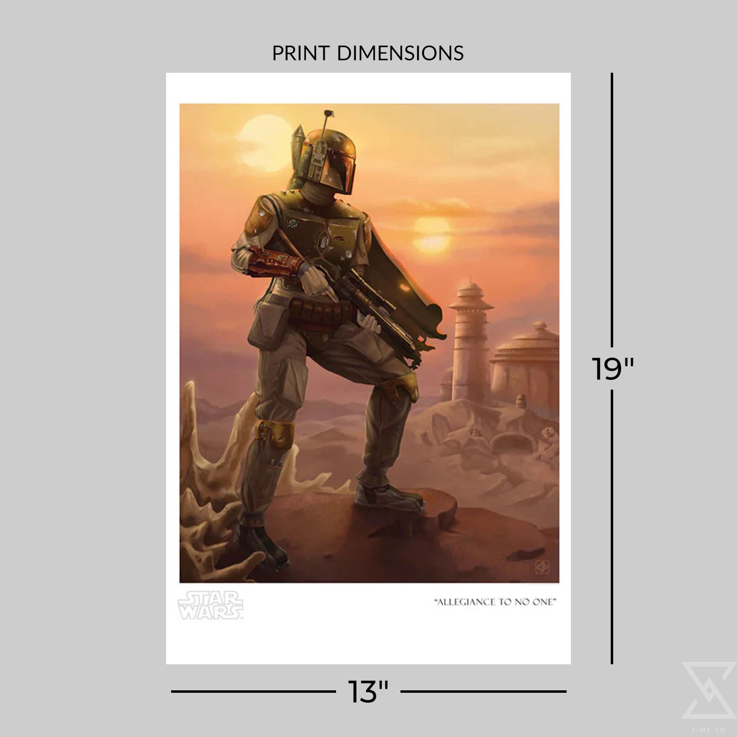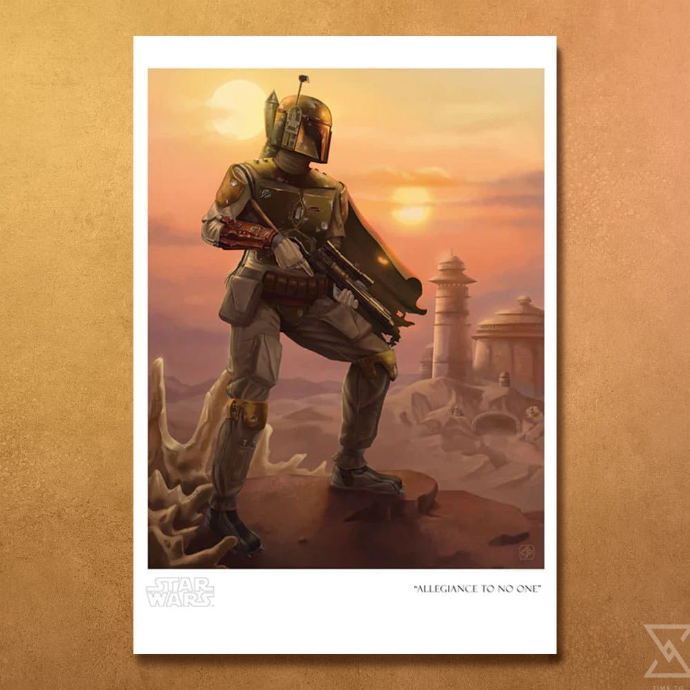 Boba Fett stands on the outskirts of Jabba’s palace on Tatooine in this incredible Star Wars artwork inspired by Star Wars: Return of the Jedi. Each fine art giclee print is hand-numbered from a limited edition of 195 pieces and comes with a Certificate of Authenticity.