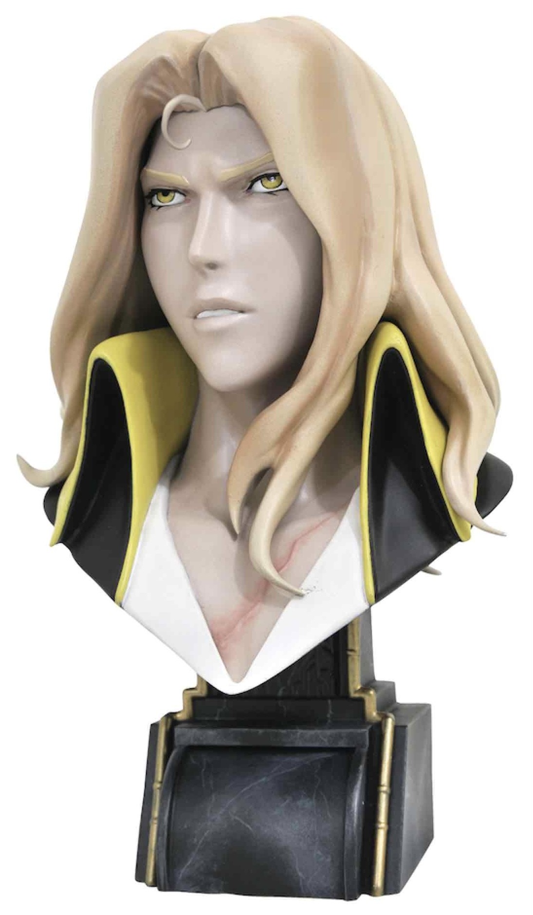 A Diamond Select Toys release! The prodigal offspring of Dracula, Alucard from the Netflix series Castlevania, has joined the ranks of the Legends in 3D line of busts! Measuring approximately 10 inches tall, this half-scale bust is limited to only 1,000 numbered pieces, and comes packaged in a full-color box with a numbered certificate of authenticity. Designed by Joe Allard, sculpted by Rocco Tartamella!