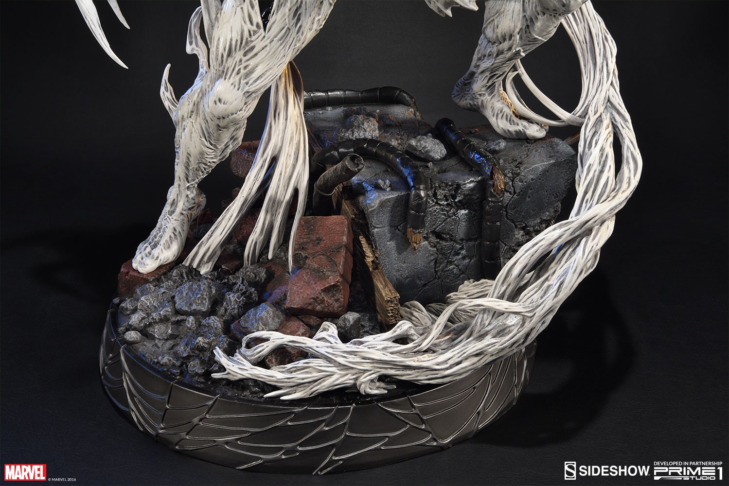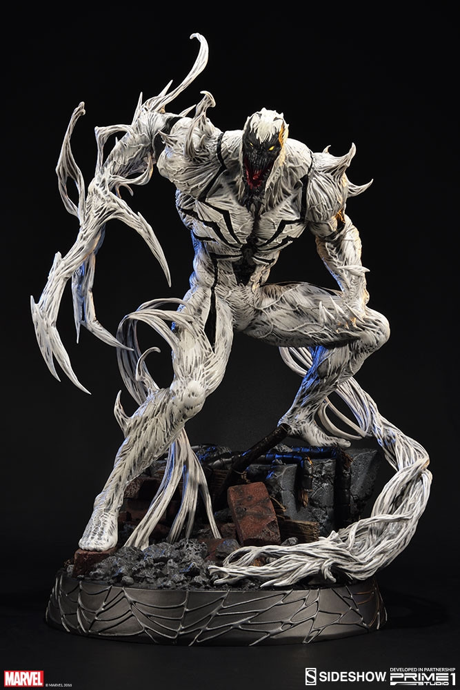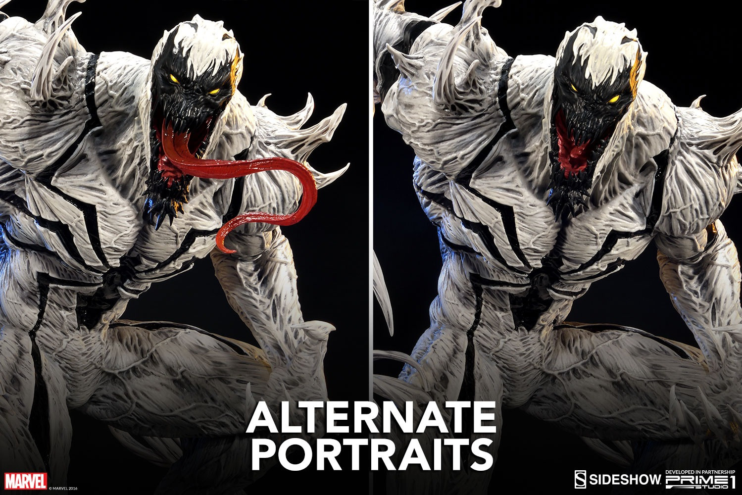 Prime 1 Studio and Sideshow Collectibles are proud to present PMMV-02: Anti-Venom. Eddie Brock was debonded from the Venom symbiote, traces of it were left in his body. Later, suffering from cancer, Brock started working as a volunteer in the F.E.A.S.T. Center. Martin Li, the alter-ego of Mr. Negative, and founder of F.E.A.S.T., used his powers to cure Eddie’s cancer. In the process, he accidentally infused the remnants of the symbiote in Eddie’s bloodstream with his power and fused them to his white blood cells, creating a new hybrid symbiote which manifested when the Venom symbiote attempted to leave its then-current host and return to Eddie. This new symbiote had powerful healing powers and other powers that differ from the Venom symbiote, producing antibodies that can cure any known disease and remove any other impurities within a human body. Unlike other symbiotes, this symbiote is completely mindless and Eddie Brock is in full control of his actions. This symbiote was destroyed when it was used as a cure for the Spider-Virus.