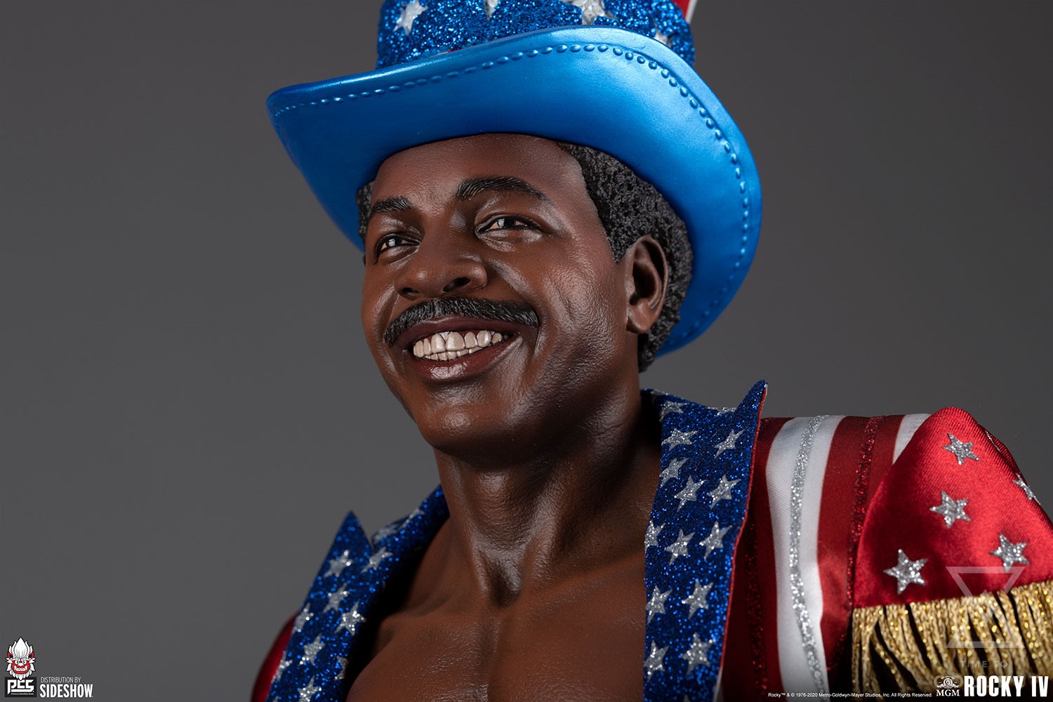 Sideshow and Premium Collectibles Studio present the Apollo Creed 1:3 Scale Statue – Rocky IV Edition, dancing into the ring with your Rocky collectibles.