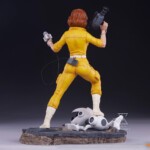 The April O’Neil 1:4 Statue stands over 18” tall and is decked out in her signature yellow jumpsuit. Her right hand holds a Channel 6 video camera, while in her left hand is her trusty microphone tethered to a small recorder strapped to the back of her suit. This intrepid reporter appears poised for action atop a street scene base littered with the broken remains of a maniacal Mouser robot.