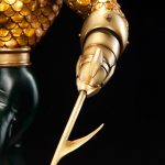 Gifted with extraordinary aquatic abilities, Arthur Curry rises from the depths wielding his mighty trident, a powerful enchanted weapon and symbol of sovereign authority. Striking a commanding pose in a regal gold and green incarnation of his iconic costume, the sworn protector of the planet swells with cool determination at the edge of the surf, as tumultuous waves break over the Atlantean themed base at his feet. Celebrating a rich comic book history, multiple display options give collectors the ability to choose between Aquaman’s classic look with short cropped wavy blonde hair, or his grizzled appearance from later story arcs, when he sports long hair, a shaggy beard and a prosthetic harpoon hand that doubles as a grappling hook.