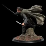 Yet even as this understanding settles between them a new peril appears. Emerging from the trees in clouds of dust and the rumble of iron-shod feet come scores of slavering Uruk-hai. Now Aragorn must fight to buy Frodo’s escape, and as the Hobbit vanishes among the leaves the clear horn of Gondor sounds below: Boromir calls for aid. Outnumbered, desperate and dispersed, the Fellowship is broken, but its members might yet be saved. This 1:6 scale polystone marries traditional hand-crafted techniques with modern technology to create an ever-more exacting piece. Senior sculptor Daniel Cockersell was charged with recreating this climatic moment as a collectible. Daniel worked in clay, using traditional techniques to develop the figure’s dynamic pose. To embody the collectible with the same sense of urgency felt in the scene, Daniel ensured Aragorn is fully armed and in full pursuit of his enemy.