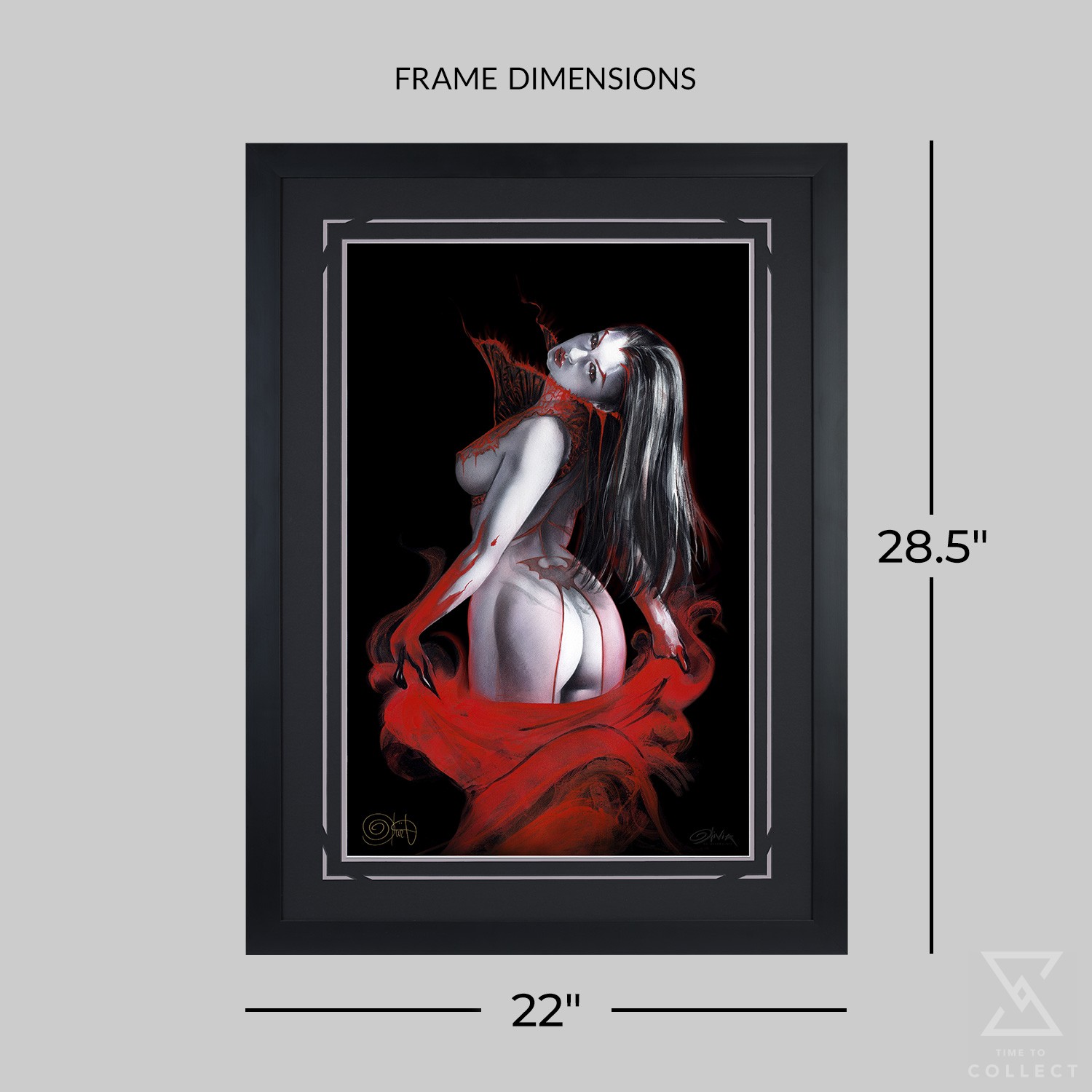 Each Aria Fine Art Print is hand-signed by Olivia herself and features both Olivia’s embossed Seal of Authenticity and a signed Certificate of Authenticity as a part of the limited edition of 250 pieces. This giclée is a full bleed print, befitting the enthralling vampires, and is offered unframed or in a custom framed presentation with a matching double mat design. Certified archival materials ensure your horror fantasy artwork will last a frighteningly long time in any collection.