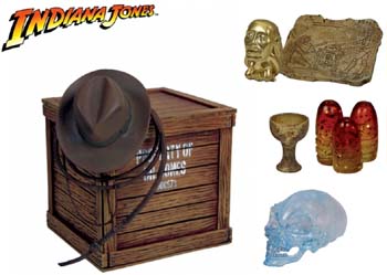 Collections are randomly packed. Every crate will contain one of three artifact collections. Collection 1 includes: the Golden Idol and Well of Souls hieroglyphics Tablet. Collection 2 includes: the Sankara Stones and Holy Grail Cup. Collection 3 includes the Krystal Skull.