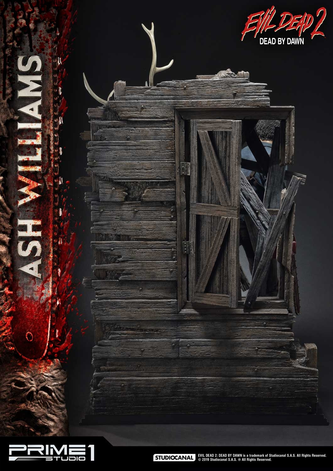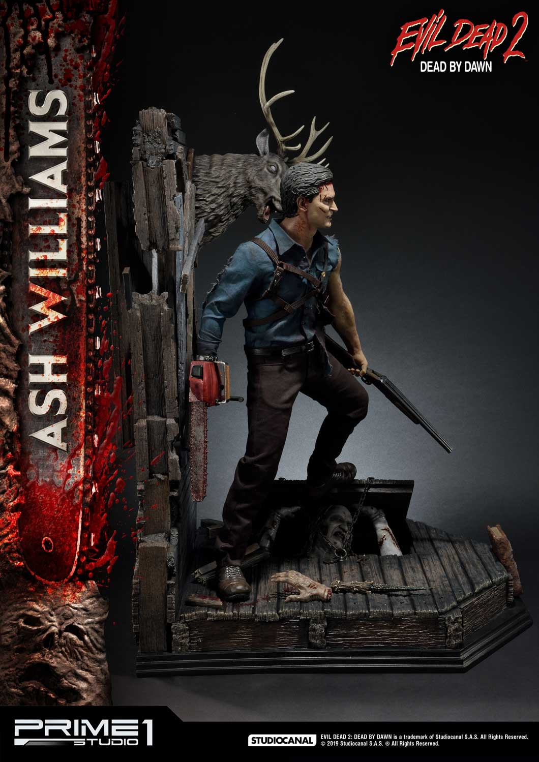 Prime 1 Studio is proud to present 1:3 scale MMED2-01: Ash Williams statue from Evil Dead 2: Dead by Dawn. Ashley Joanna Williams also known as Ash is the anti-hero protagonist of the Evil Dead series, played by Bruce Campbell, and created by director Sam Raimi. Ash is one of the few non-monster characters in the “Horror” genre to have such notoriety and most easily recognized based on his final iconic appearance armed with a sawed-off double barrel shotgun and a chainsaw strapped to the stump on his right arm where his hand once was. Capturing the likeness and details of Bruce Campbell, this Museum Masterline 1:3 scale statue of Ash Williams comes with an additional alternate portrait stepping on a trap door with Henrietta trying to escape from the cabin cellar floor. Evil Dead fans don’t miss your chance to own Ash with his infamous chainsaw and his sawed-off double barrel shotgun!