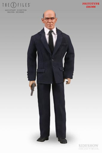 The Assistant Director Skinner 12 inch Figure features over 30 points of articulation, authentic portrait likeness sculpted by Andy Bergholtz, full costume suit jacket, long sleeve shirt, belt, pants, socks and shoes. Accessories include a S & W automatic handgun, flashlight, cellular phone, glasses, laptop, Wallet style FBI Badge, Clinton & Reno Photos, and a display base featuring the X-Files logo. Window box packaging.