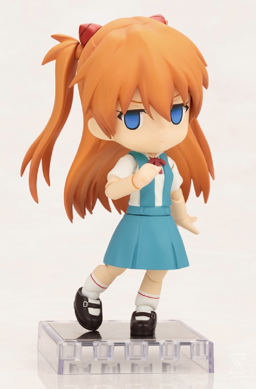 A Kotobukiya Japanese import! For the next members of the lineup of Cu-Poche action figures Kotobukiya returns to a familiar franchise beloved around the world, Evangelion. The launch of this great partnership consists of two adorable new versions of everyone’s favorite Eva pilots from 2.0 You Can (Not) Advance starting with Asuka Langley Shikinami! Poseable and fun, each Cu-Poche figure features multiple points of articulation and magnets in its feet for extra stability on the included base or any metal surface. The Second Child who operates the Evangelion Unit 02, Asuka shows off her silly side in this diminutive presentation that can barely contain her boisterous spirit. The red-haired girl is dressed similarly to her friend Rei but with some differences; while she wears the same blue dress, white shirt, and red tie she has brown shoes and white socks with red accents. Asuka too comes with her book bag and parts to recreate an array of facial expressions showing off her different moods! Asuka Langley Shikinami stands has multiple points of articulation for great posing and display options. She’s fun all on her own and even better with other Evangelion Cu-Poche figures like Rei Ayanami (sold separately)!