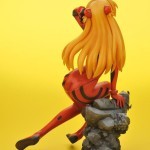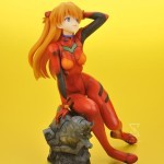 Her suit, especially accentuating the curves of her legs, represents the new restyled version as seen on Rei as well. Asuka sits upon a miniature rock-like bust of Evangelion Unit 02, and even that has new details from Evangelion 2.0. Colors on the young pilot are bright and resplendent, with special emphasis on her signature red. Crafted by Bishoujo sculptor Tsukuru Shirahige, Asuka is approximately 7 ¾ inches tall (in 1/6th scale with Rei).