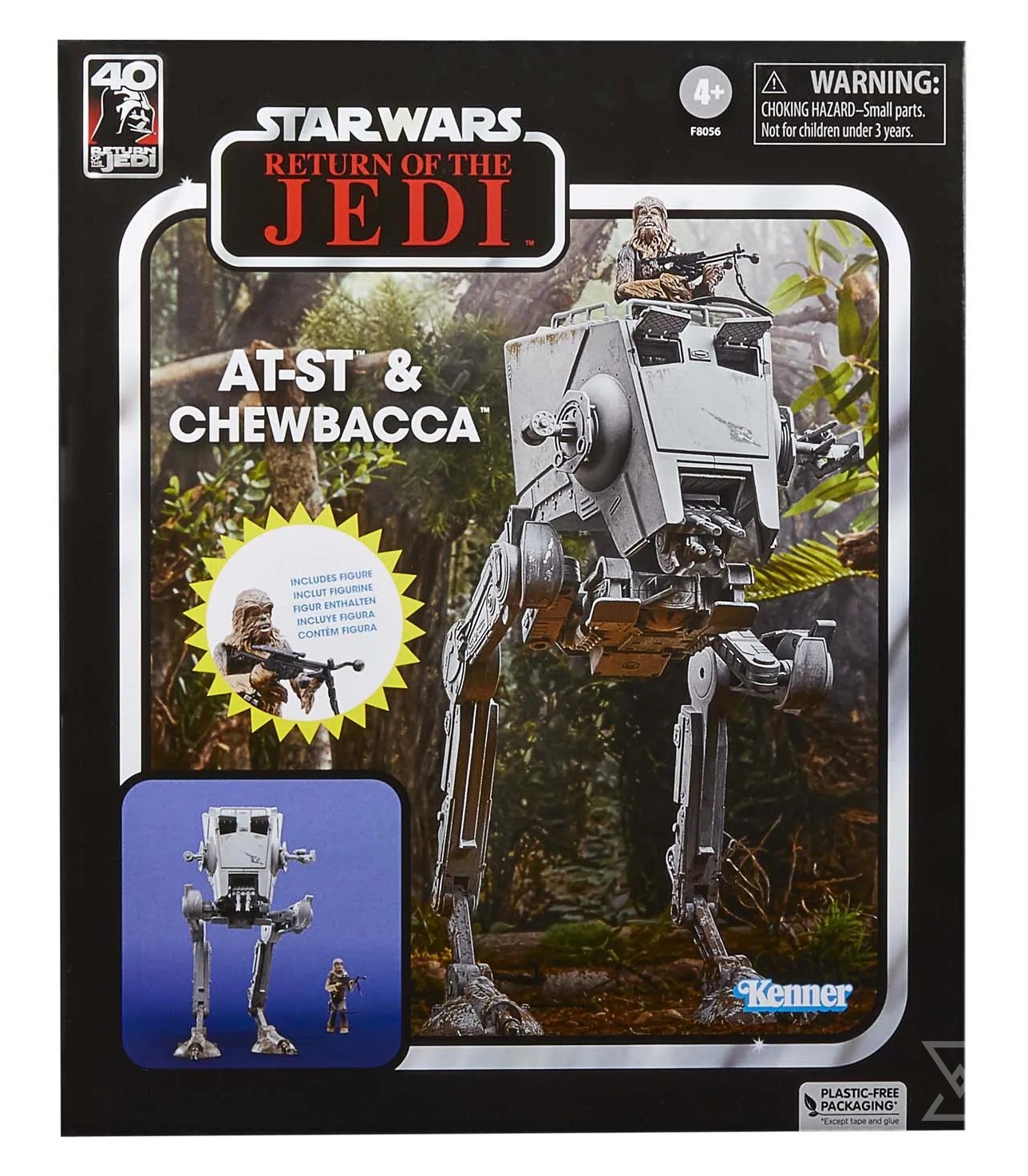 - CELEBRATE THE 40th ANNIVERSARY OF STAR WARS: RETURN OF THE JEDI: This AT-ST & Chewbacca 3.75-inch vehicle and action figure is inspired by the iconic scene in Star Wars: Return of the Jedi — a great gift for Star Wars collectors and fans ages 4 and up