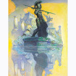 Legendary fantasy, science fiction, and horror artist Frank Frazetta succeeded in capturing and enhancing popular imagination across a variety of subjects. An enduring symbol of a mythic past, the lost empire of Atlantis has similarly inspired minds for centuries. Created as the cover for Brad Steiger’s 1973 publication Atlantis Rising, Frazetta’s depiction of the sunken society presents splendor and ruin in equal measure. A patinated bronze warrior holding a javelin stands before the crumbling stone structures. What once stood mighty before the history of mankind is now moss-covered and forgotten by all but the most curious minds.