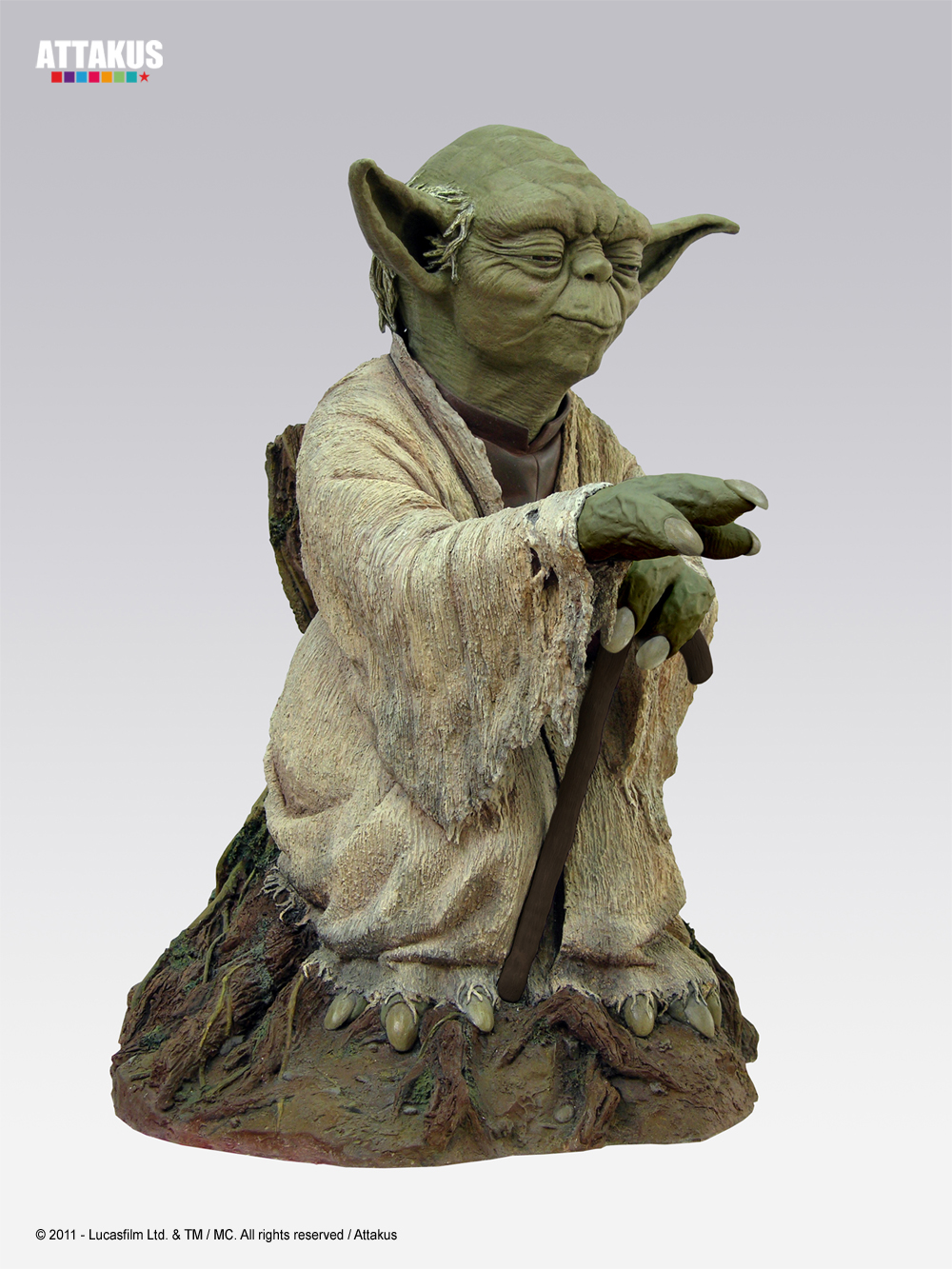 Large resin collection statue of Master Yoda, inspired by episode V of the series Star Wars (The Empire strikes back). Collector numbered and limited to 499 copies in the world. Carved in France and hand painted. Delivered with its Attakus certificate of authenticity. Powerful and zen … Captured at the moment of its most intense concentration, this Yoda inspires wisdom and serenity. Backed by a richly textured tree trunk, with its medal, this character was worked for many months in close collaboration with Lucasfilm to achieve this extremely detailed resin sculpture. Each wrinkle of the 900-year-old Jedi Master is faithfully reproduced and the effect is striking!