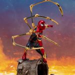 Peter Parker is decked out in the Iron Spider suit that fans first got a glimpse of in Homecoming and finally made its debut in Infinity War. In addition to the new sleek design, the suit’s most noticeable feature are the metal pincers that extend from the hero’s back, giving the statue an impressive size and height that rivals the Infinity War Thanos ARTFX+ statue.