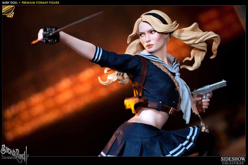Sideshow Collectibles is proud to present the Babydoll Premium Format figure, inspired by the epic action-fantasy, Sucker Punch. Featuring detailed accessories and a real fabric costume, the Babydoll Premium Format figure captures the troubled heroine in stunning 1:4 scale. Each piece is individually painted and finished, with the unique quality and attention to detail that is the trademark of a handcrafted Sideshow Collectibles product. Depicted in the midst of battle, standing approximately 19 inches tall, the dynamic Babydoll Premium Format figure makes an outstanding addition to any collection.