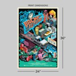 Hop in the DeLorean and set the clock for 1955 in this stylish 40th anniversary artwork for Back to the Future. Each 24 x 36″ lithograph print is hand-numbered as part of a limited edition of 200 pieces, making this Back to the Future art the next great addition to your sci-fi movie poster collection.