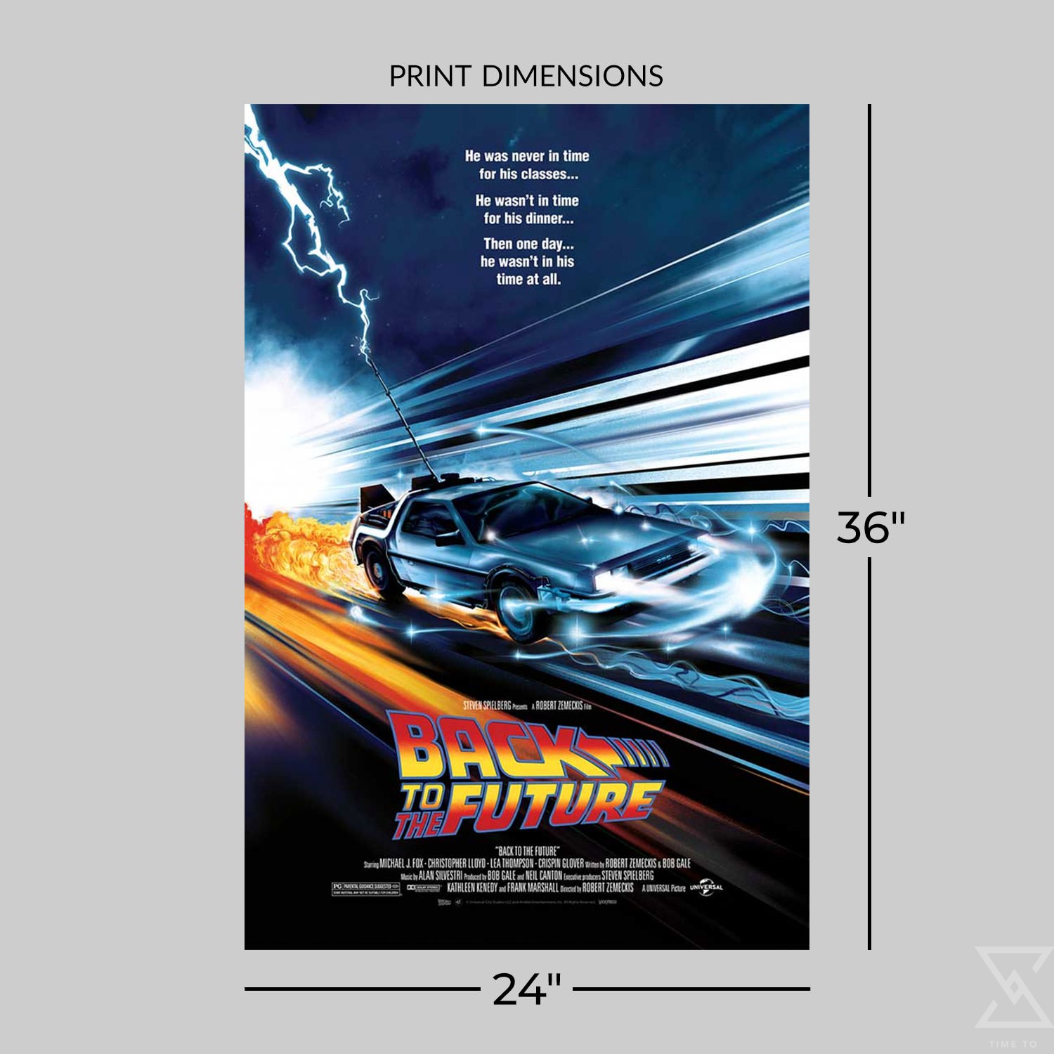 Buckle up and ride into the future in this 40th anniversary artwork for Back to the Future. Each 24 x 36″ lithograph print is hand-numbered as part of a limited edition of 200 pieces, making this Back to the Future art the next great addition to your sci-fi movie poster collection.