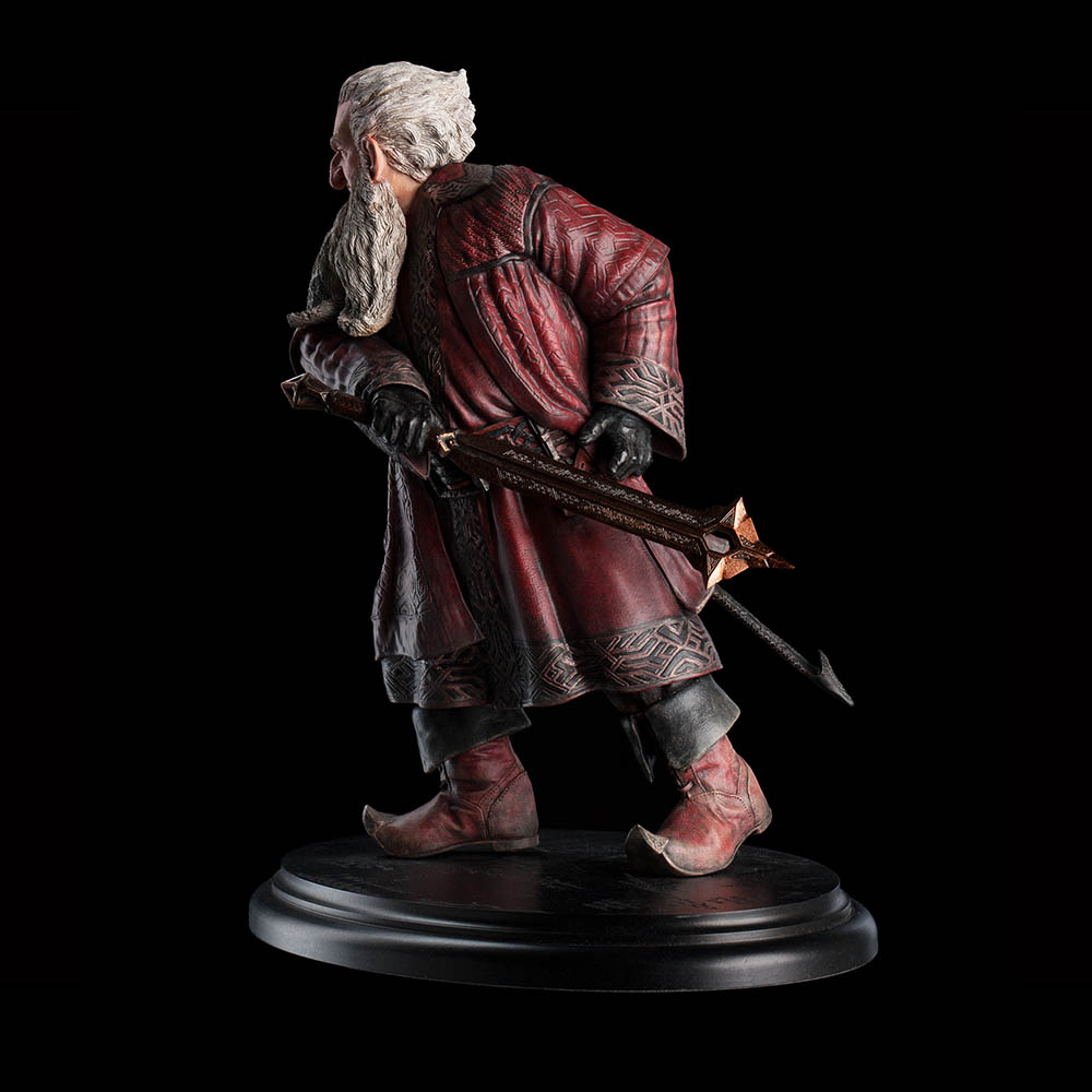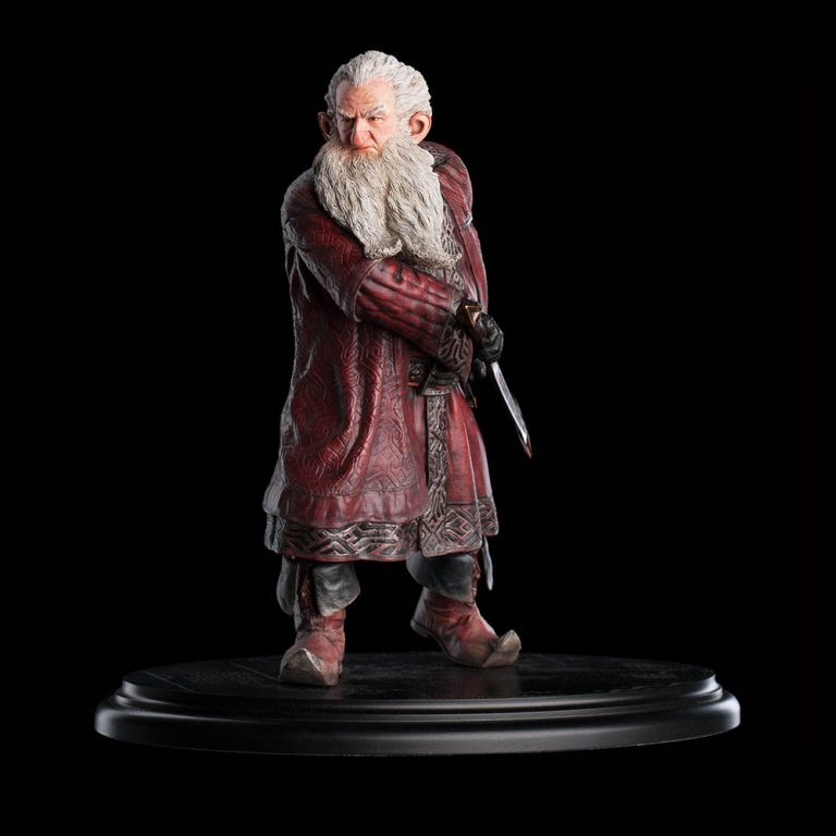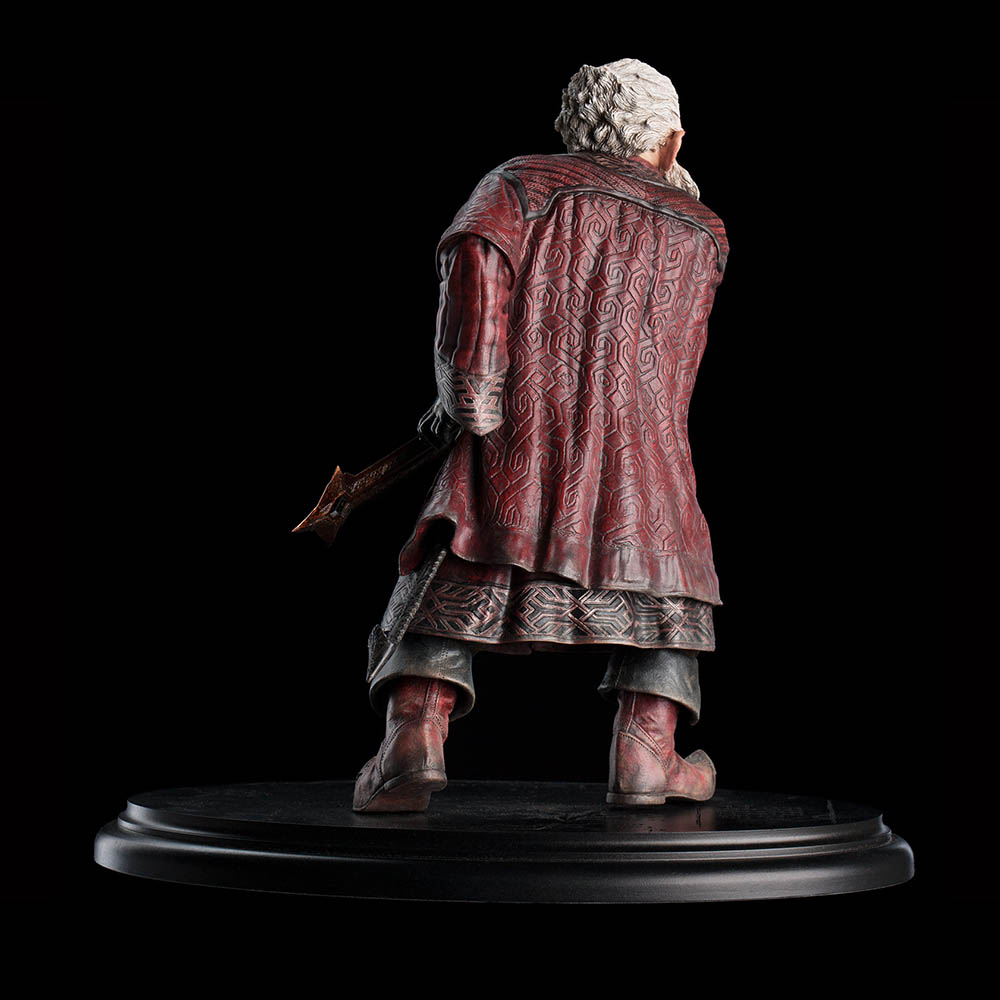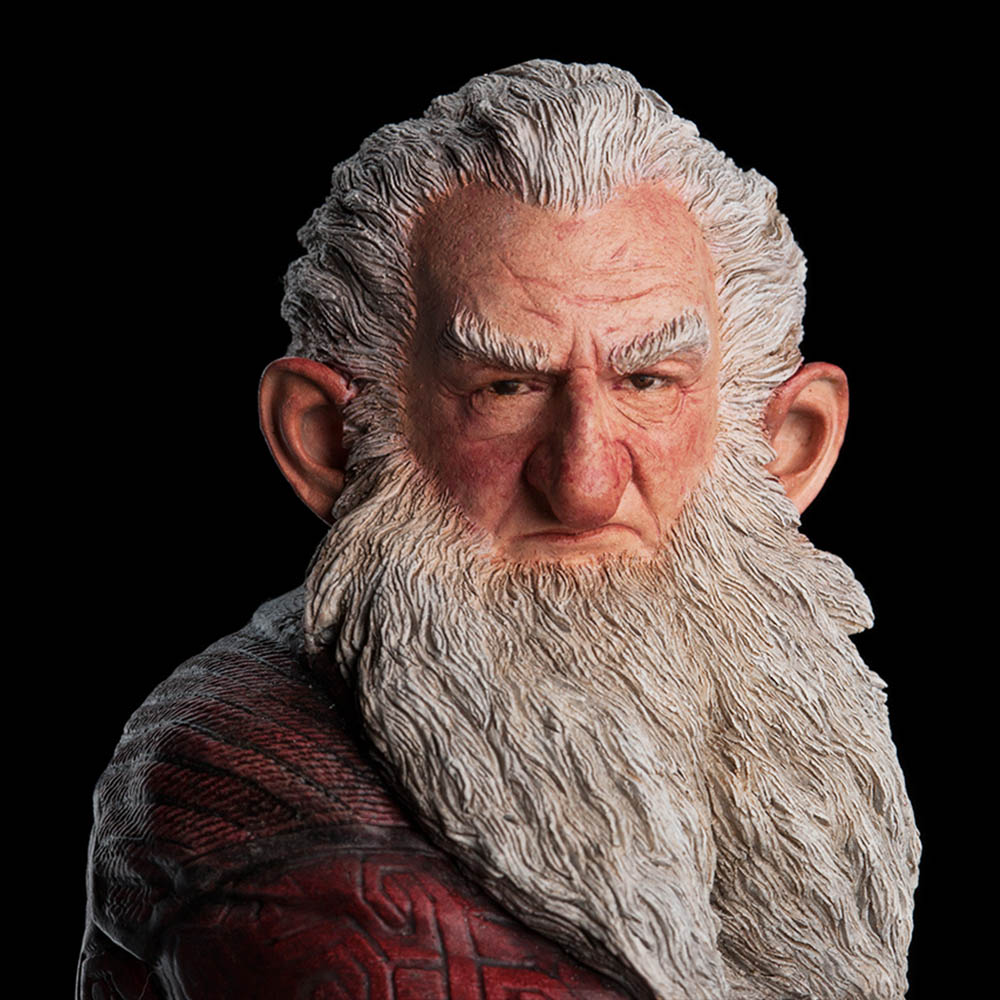 While the old Dwarf is long in beard, his gnarled hands have lost little of their strength over the years and his eyes are still as keen as a hawk’s. Upon his hip he wears a wickedly pointed Dwarven mace. Wrought in the smithies of Erebor lost, its edges are as sharp as any sword and its copper-hued faces blaze like fire in the sun. Sculpted and created by the same artists and craftspeople who work on our movies, Balin the Dwarf is the fourth sculpture in our range of 1/6 scale characters from The Hobbit: An Unexpected Journey.
