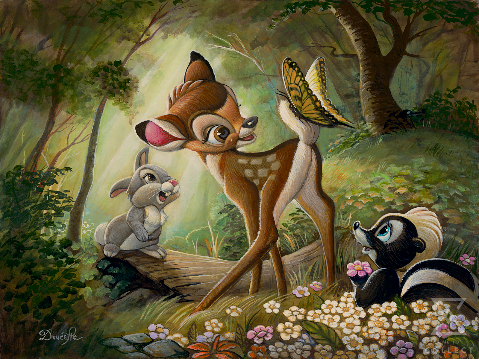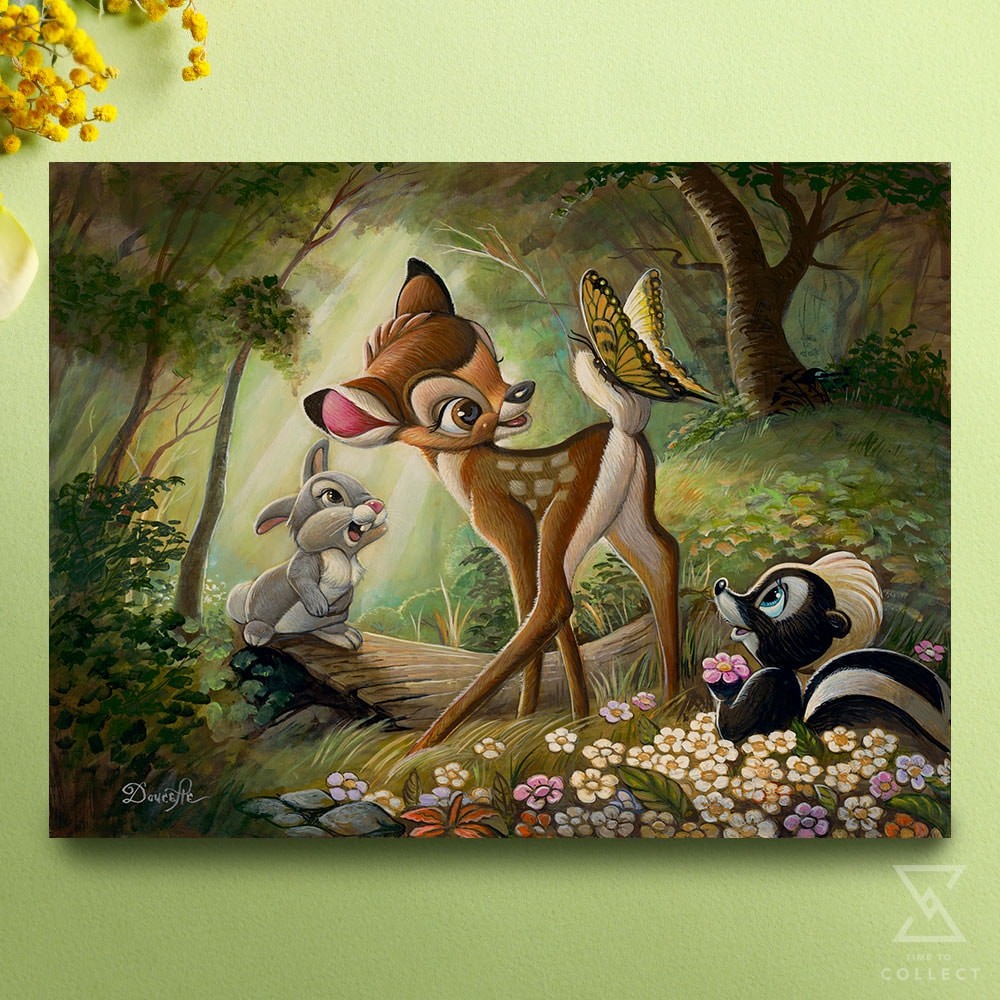 Sideshow and Disney Fine Art proudly present the Bambi’s First Butterfly Canvas Art Print by artist Bob Doucette!