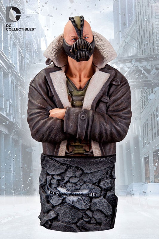 Sculpted by Dave Cortes and Paul Harding After the blockbuster The Dark Knight Rises hits theaters July 20, be sure to pick up this Bane Winter Battle Bust as he prepares for his showdown in the streets of Gotham. This scene-stealing collectible is sure to fly off the shelves! This hand-painted, cold-cast porcelain statue is packaged in a 4-color box.