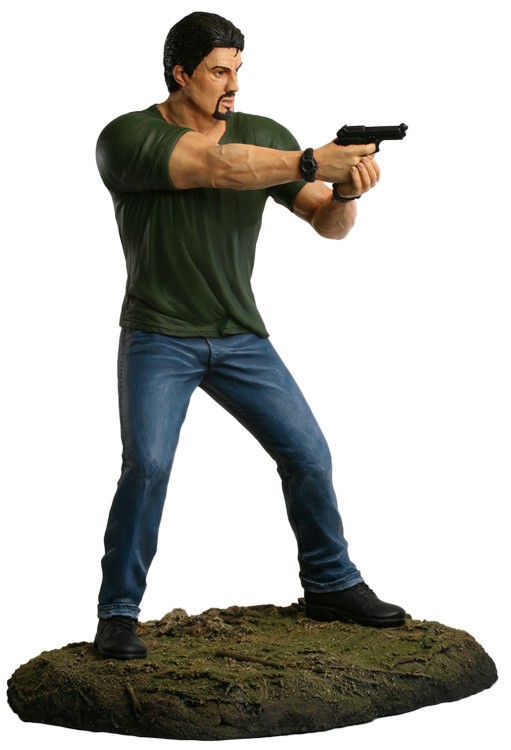 From the new Sylvester Stallone action franchise The Expendables, we present this 1:6 scale statue of Sylvester Stallone as “Barney Ross”. Depicting his first encounter with General Garza’s soldiers, Sly is still in civilian attire, but still all action with pistol blazing!
