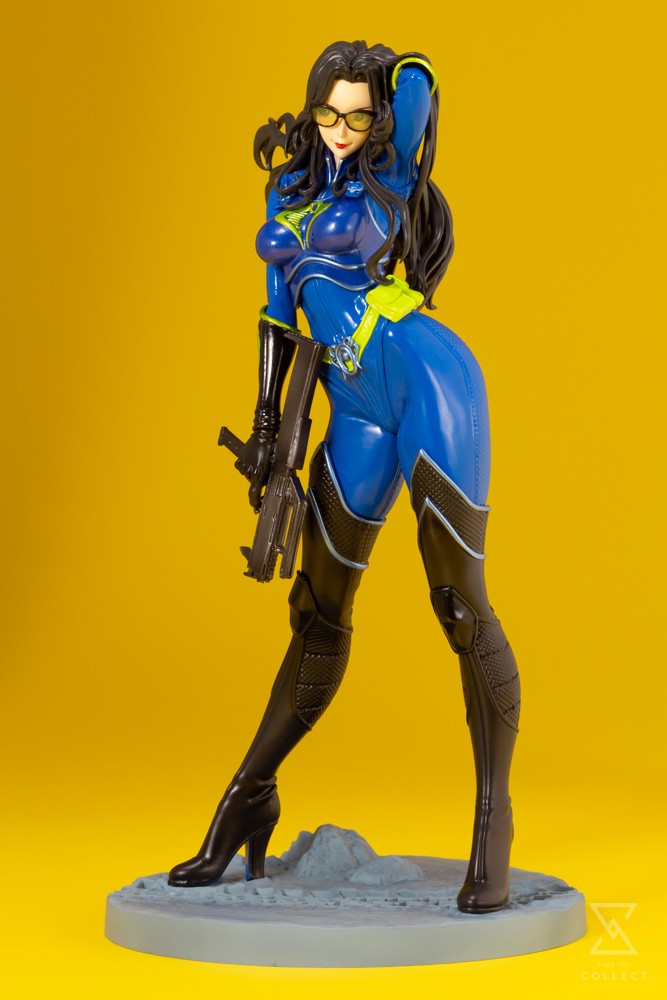 In this new line of 1/7 scale statues, the colorful characters of G.I. JOE are reborn as Kotobukiya’s Bishoujo! The world’s first series of action figures created by Hasbro, G.I. Joe follows a group of heroes in their fight against Cobra, an evil organization plotting to take over the world. In this new line of 1/7 scale statues, the colorful characters of G.I. JOE are reborn as Kotobukiya’s Bishoujo! This limited edition statue is based on the 25th Anniversary Baroness who was released in 2008. This version of Baroness can be seen in a blue suit variant of the original action figure. The ultramarine blue and neon green coloration is perfect for night missions. The submachine gun included in this version of Baroness comes in a gunmetal color and can be displayed with the standard Baroness Bishoujo Statue and Baroness The Crimson Strike Team Bishoujo Statue. Baroness 25th Anniversary Blue Color Bishoujo Statue‘s base has been made with a similar scenery/concept as Scarlett Sky Blue Color Bishoujo Statue and looks great displayed together. Created through the power of technology, this high quality digitally sculpted limited edition statue leaves no detail untouched thanks to the expert hand of sculptor Takaboku Busujima (Busujimax).