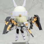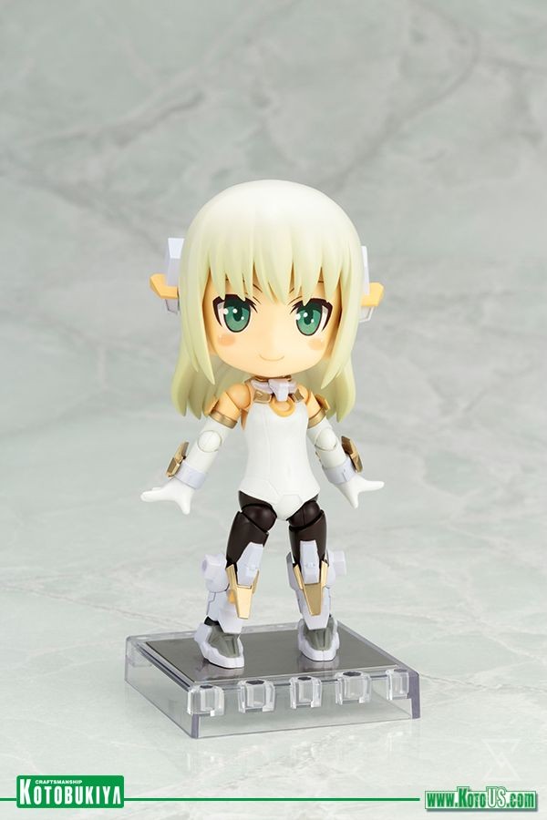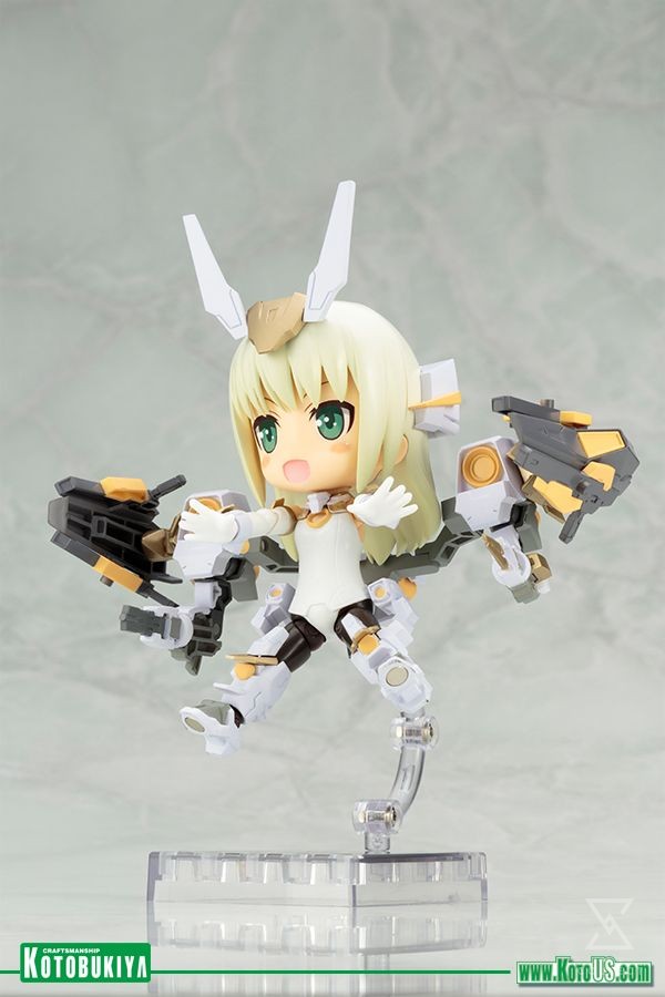 A Kotobukiya Japanese import! Kotobukiya has created the ultimate mash up by combining our Frame Arms Girl series and the Cu-Poche Action Figures line, and the next robot lady coming to you in a whole new format is the fierce and high-flying Baselard! Poseable and fun, each 4 ½ – 5 inch Cu-Poche figure features multiple points of articulation and magnets in her feet for extra stability on the included base or other metal surface. One of the original Frame Arms Girls, Baselard featured an aerial motif that transfers here to the Cu-Poche version along with specific design elements and colors. The little robot replicates the model kit’s appearance as a young lady wearing a black, white, and gold external armored Frame on her limbs, torso, and head. Baselard’s removable armor takes the form of a huge backpack unit with boosters and integrated weapons, and she completes the look with a set of cool antennae! Sculpted by Yoshihiro Saimaru, the Frame Arms Girl stands 5 inches tall and has approximately 30 points of articulation for great posing and display options. In this new size and format Baselard is great for display at home or fun on the go, and she pairs perfectly with your other Cu-Poche figures and Frame Arms Girl models!