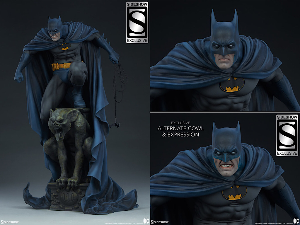 The Exclusive Edition of the Batman Premium Format™ Figure includes an additional grimacing portrait that features shorter ears on the cowl. Make criminals cower in fright with this exclusive swap-out display option for the Dark Knight.