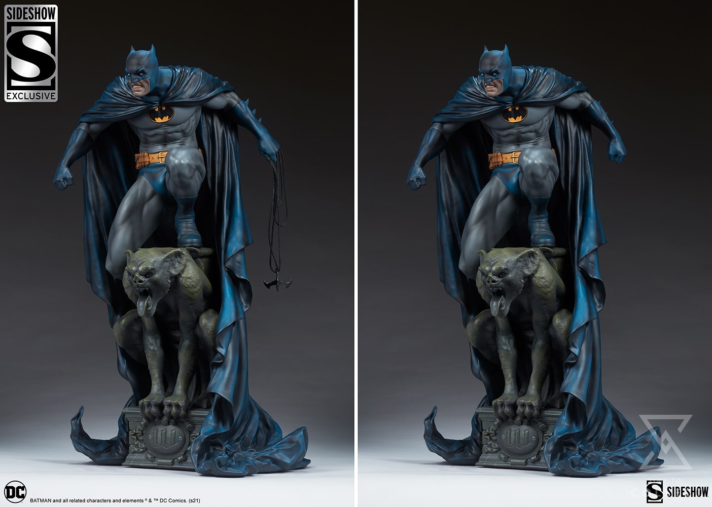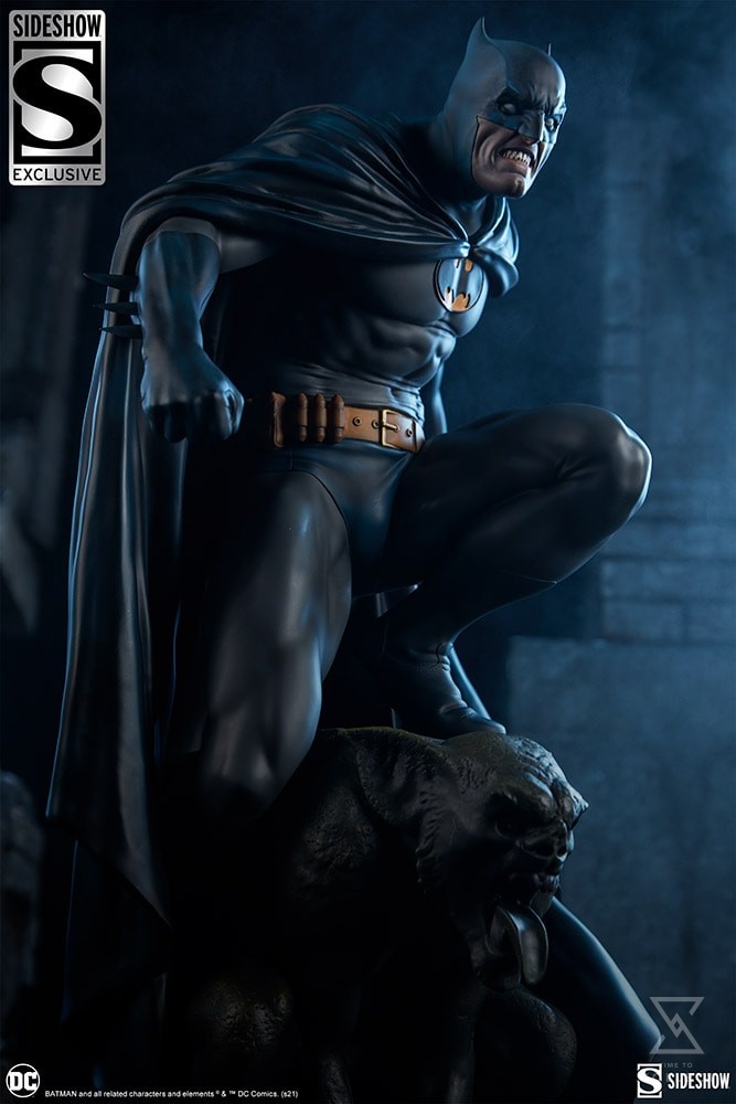 The Batman Premium Format™ Figure measures 22.5” tall, cloaked against the dark skies of Gotham City as he joins the lurking gargoyles that watch the streets below. Crouched in wait, Batman observes from the perfect vantage point to get the drop on his foes and dish out his signature brand of justice.