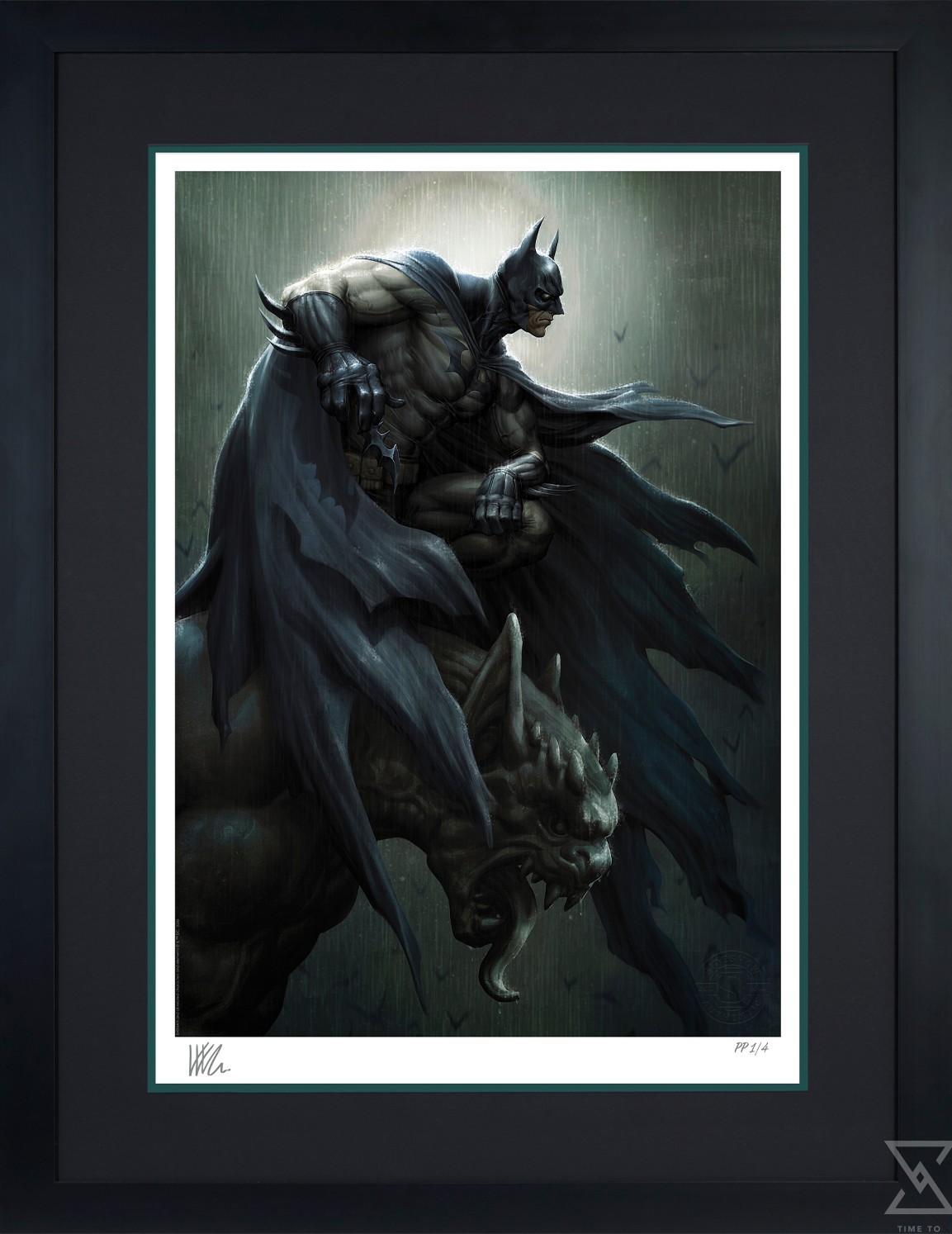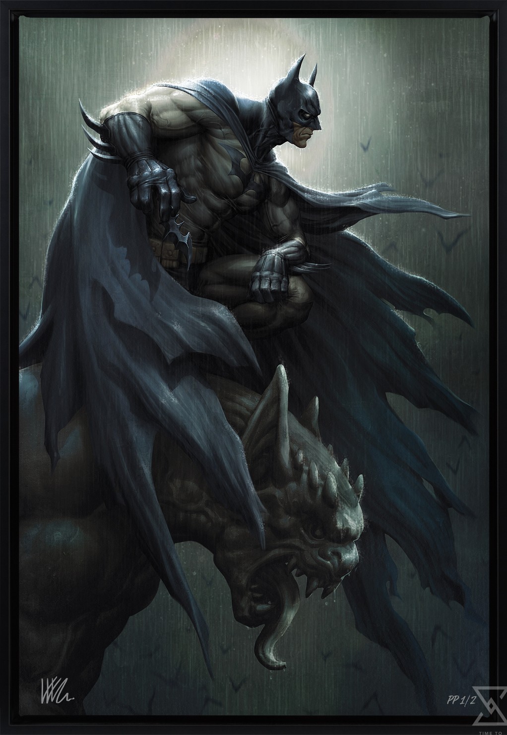 Originally created as a variant cover for Batman #147 (2024), written by Chip Zdarsky for DC, this Batman art is now available to fans as an unframed giclée print or in a custom framed presentation. Each Batman Fine Art Print features an authorized, automated artist signature and an embossed Sideshow Seal of Authenticity as part of the limited edition of 147 pieces.