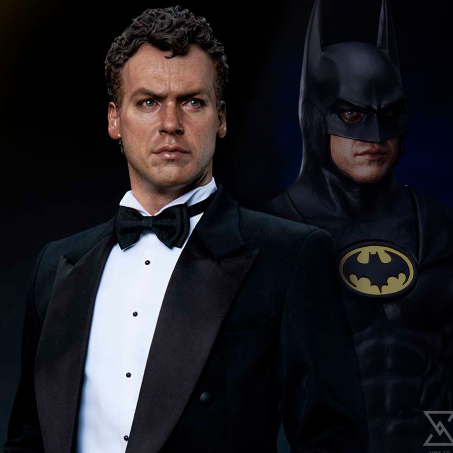 Blitzway did an astonishing job at not only recreating a Keaton’s facial features, but also replicating the Batsuit. The costume’s design was brought to us by Bob Ringwood, who incorporated many elements from the comics, such as the cowl with pointed ears, the golden utility belt and the scalloped fabric leather-like cape that all add to the ominous presence of the character. The suit now takes a midnight black shade and heavily armored, giving it a much more menacing look and an air of invincibility.